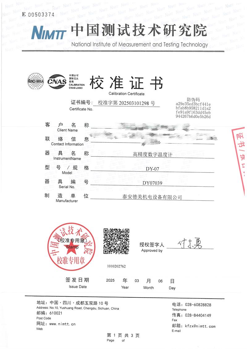 | 上一條:露點儀檢定、校準(zhǔn)證書 | 下一條:廉金屬熱電偶檢定爐-校準(zhǔn)證書 |