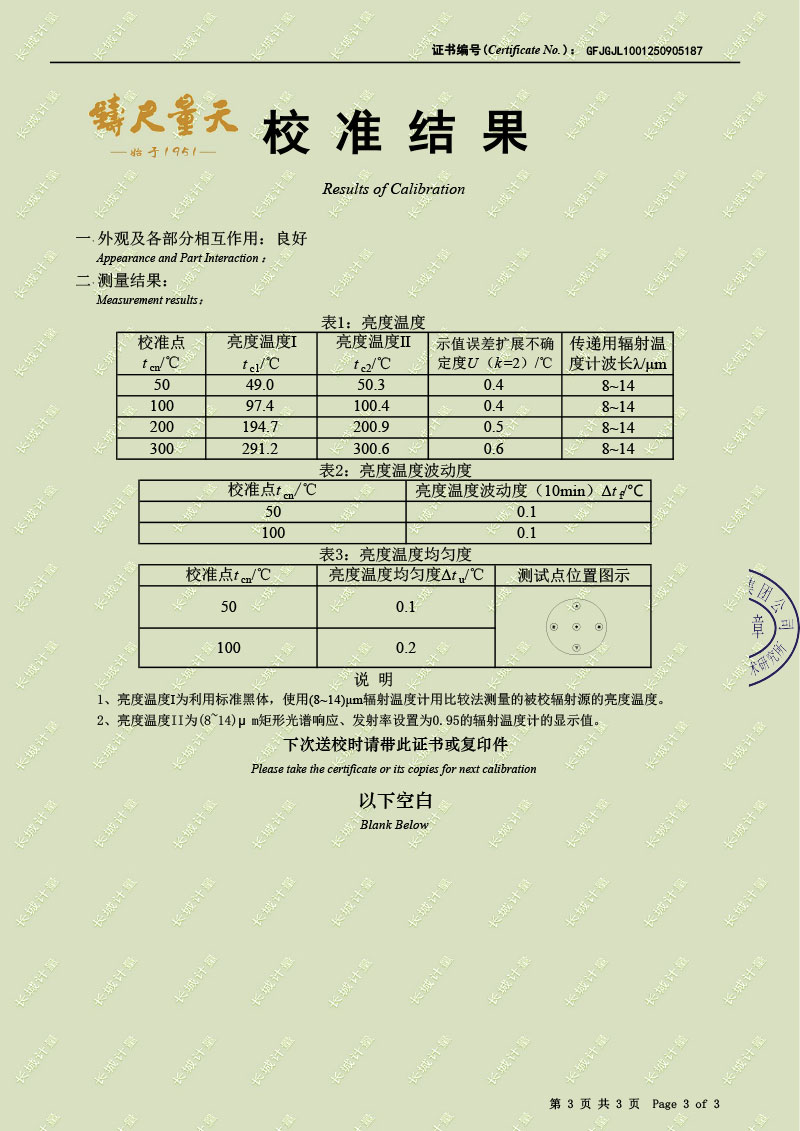 分體式面源黑體輻射源(室溫+5-300℃)校準(zhǔn)證書 2025-9-12 本文被閱讀 2714 次