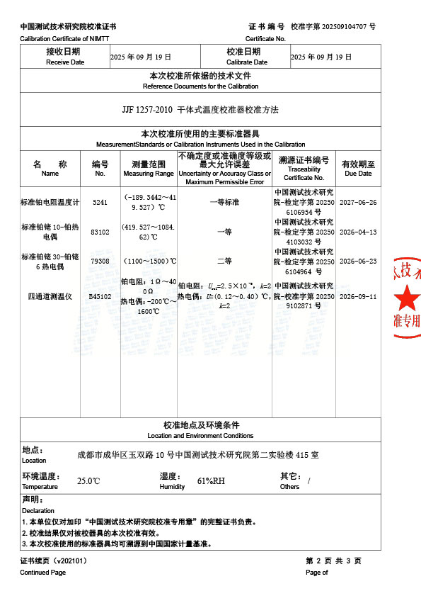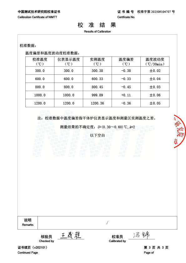 | 上一條:黑體輻射源(50-1200℃)校準(zhǔn)證書 | 下一條:廉金屬熱電偶檢定爐-校準(zhǔn)證書 |