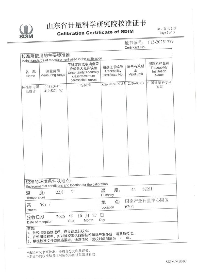 冷鏡式露點儀校準證書 2025-11-7 本文被閱讀 2208 次