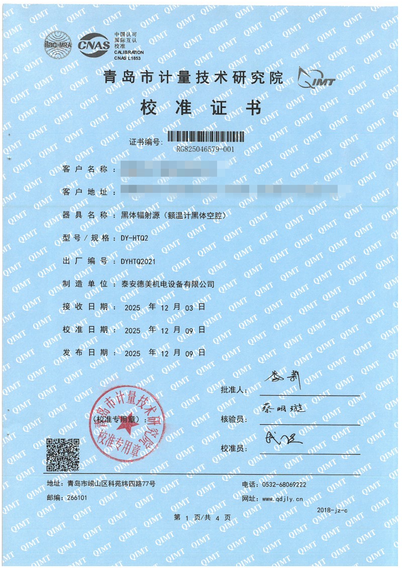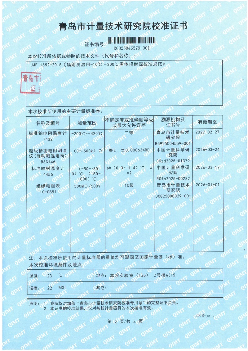 額溫計黑體空腔校準證書 2025-12-18 本文被閱讀 1737 次