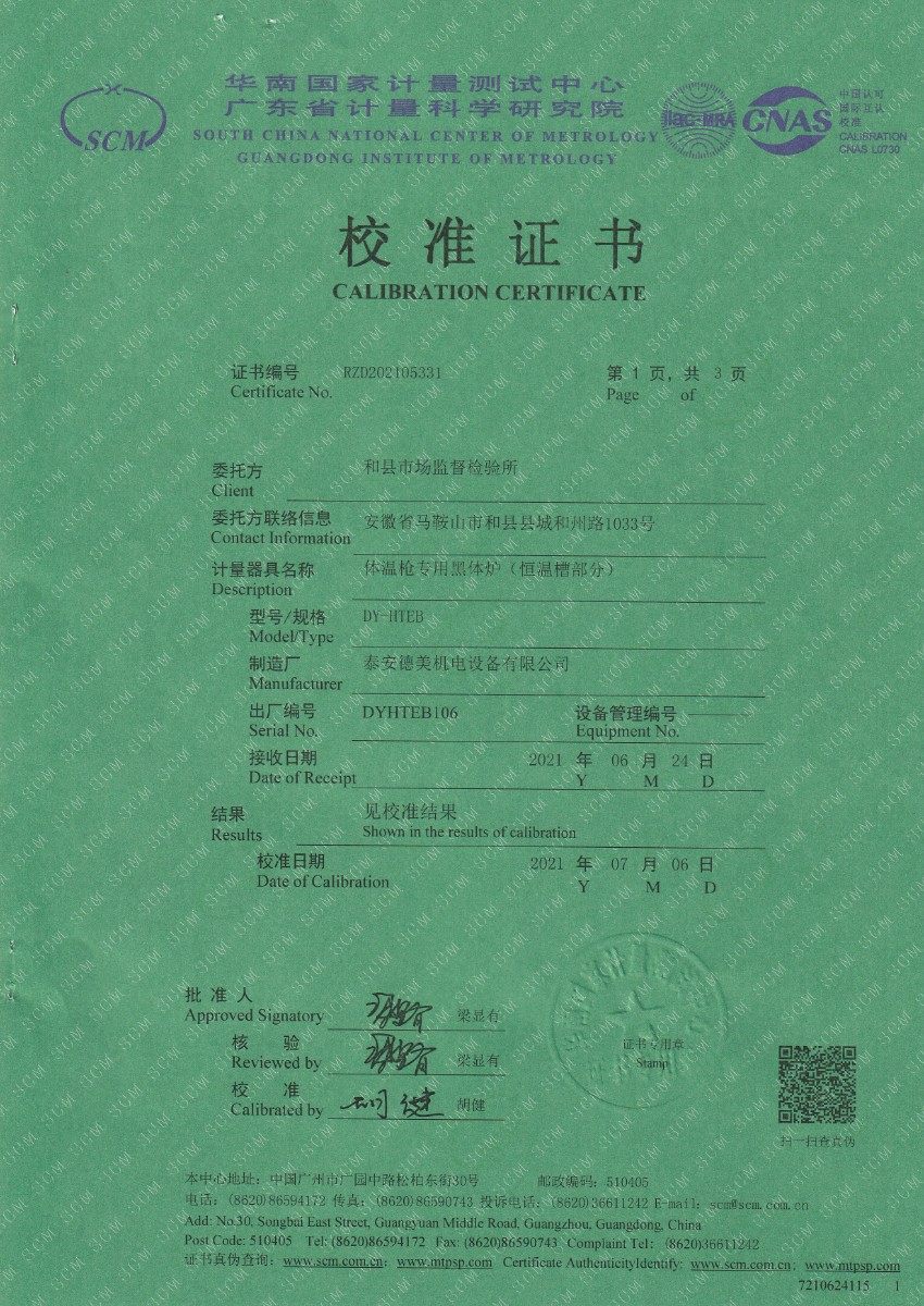 | 上一條:和縣市場監(jiān)督檢驗所-耳溫黑體(黑體輻射源) | 下一條:廉金屬熱電偶檢定爐-校準(zhǔn)證書 |