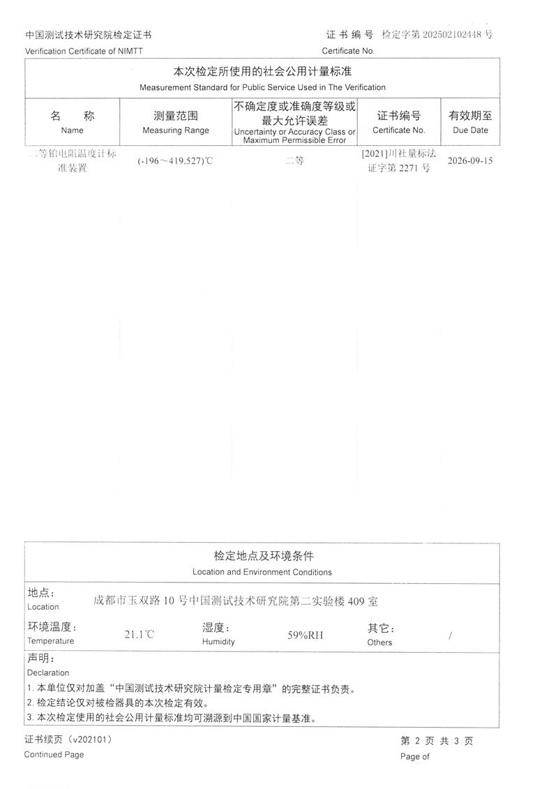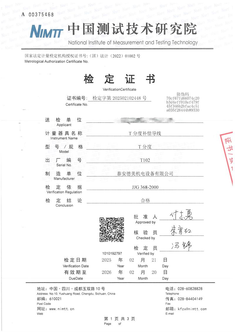 T分度補(bǔ)償導(dǎo)線檢定證書 2025-2-25 本文被閱讀 5606 次