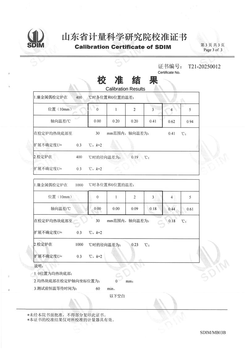 廉金屬熱電偶檢定爐(300~1200℃)校準(zhǔn)證書 2025-2-26 本文被閱讀 5572 次