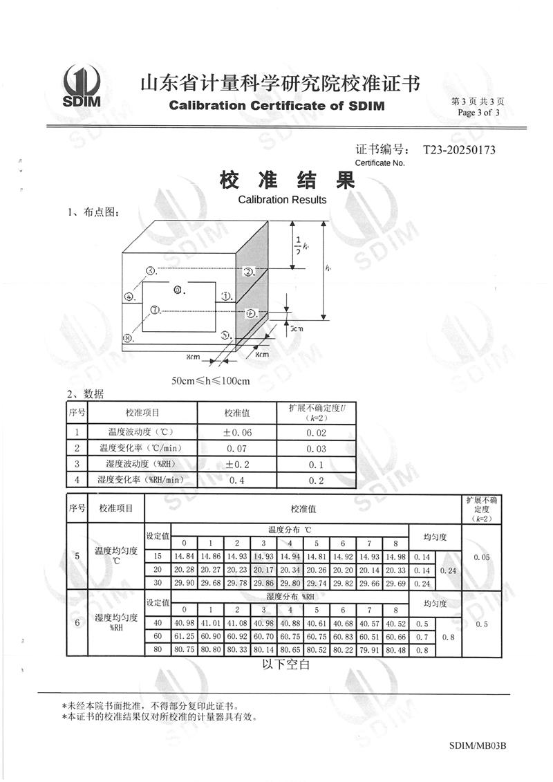 溫濕度檢定箱(-5~65℃)校準(zhǔn)證書 2025-2-26 本文被閱讀 5999 次