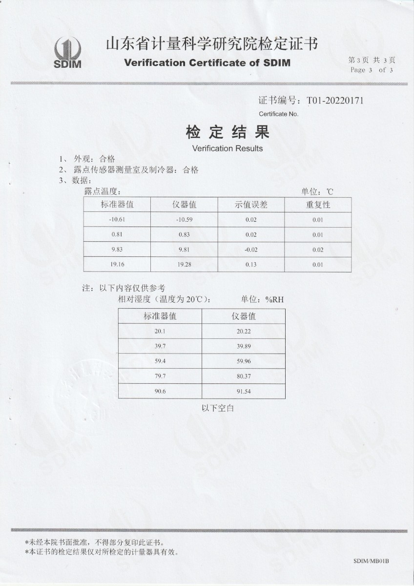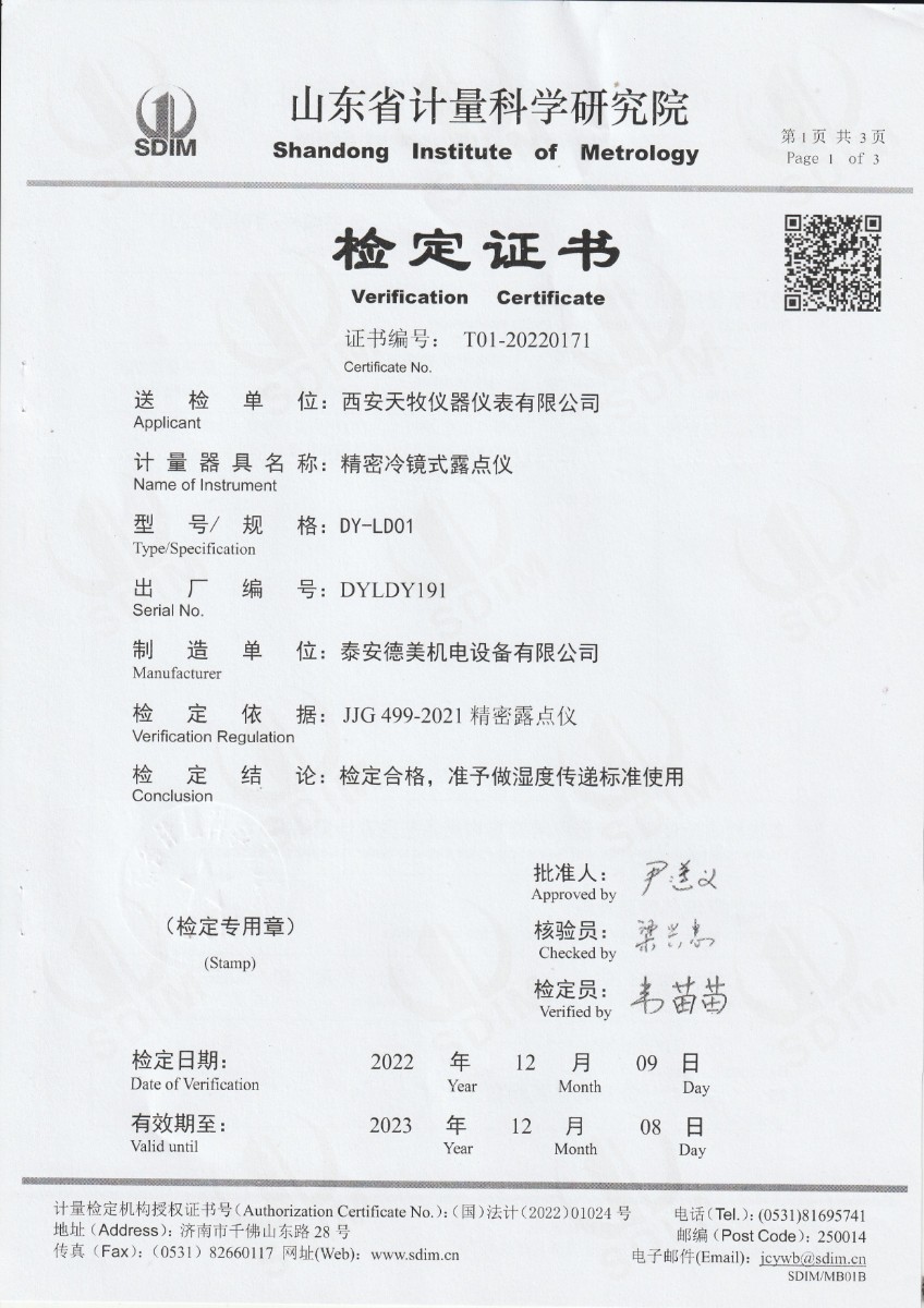 西安天牧儀器儀表有限公司 精密露點儀 檢定證書 2023-1-7 本文被閱讀 12015 次