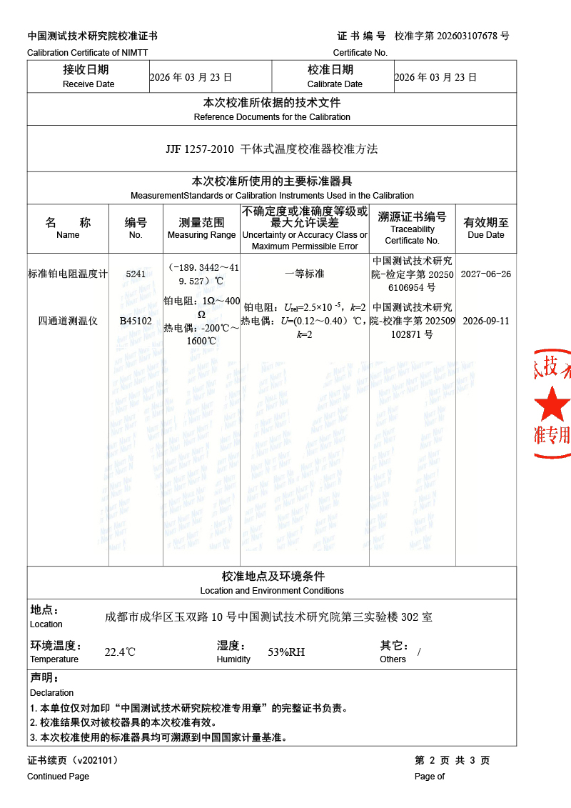 干體爐-校準證書 2026-3-25 本文被閱讀 352 次