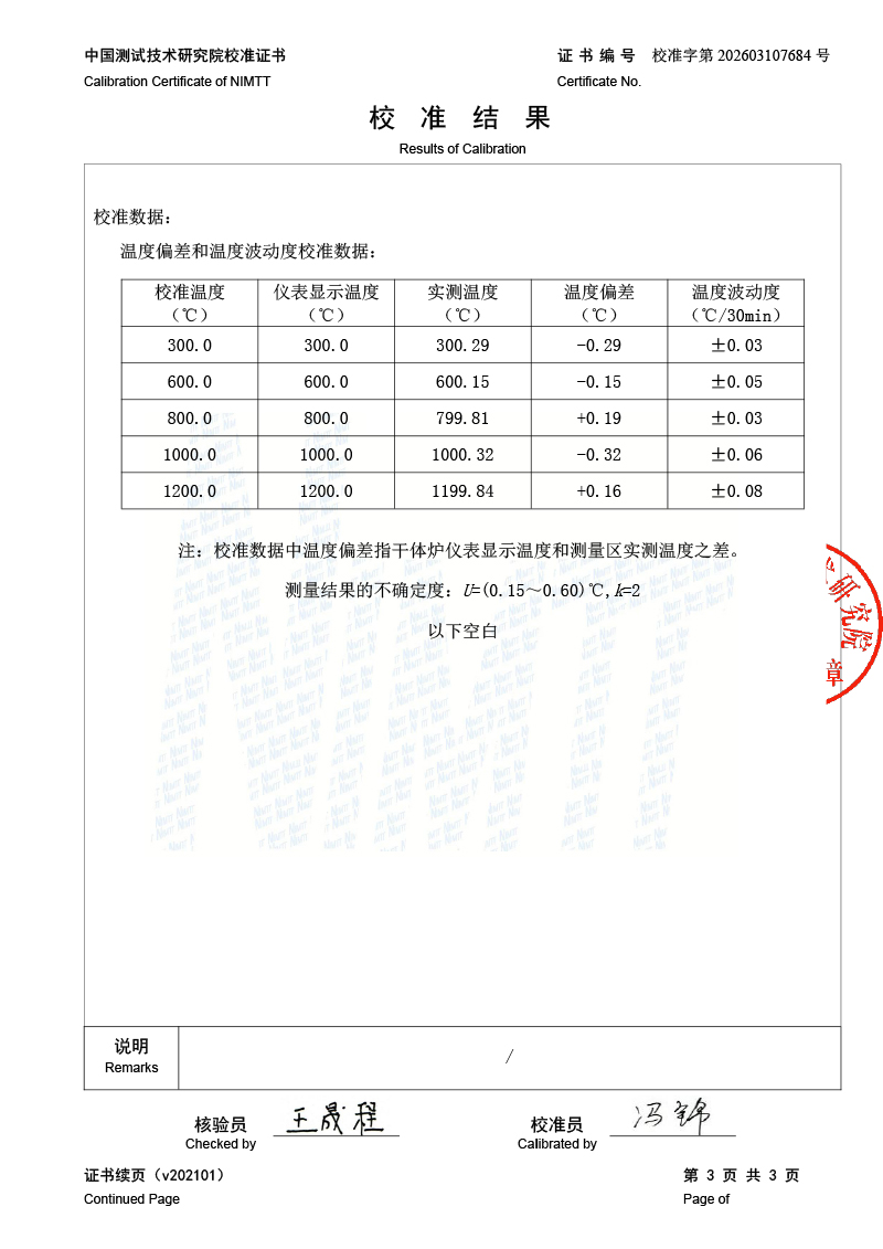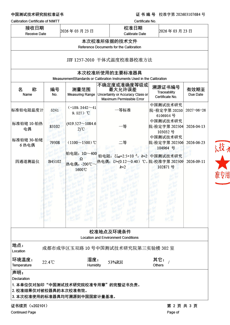 高溫干體爐-校準證書 2026-3-25 本文被閱讀 434 次