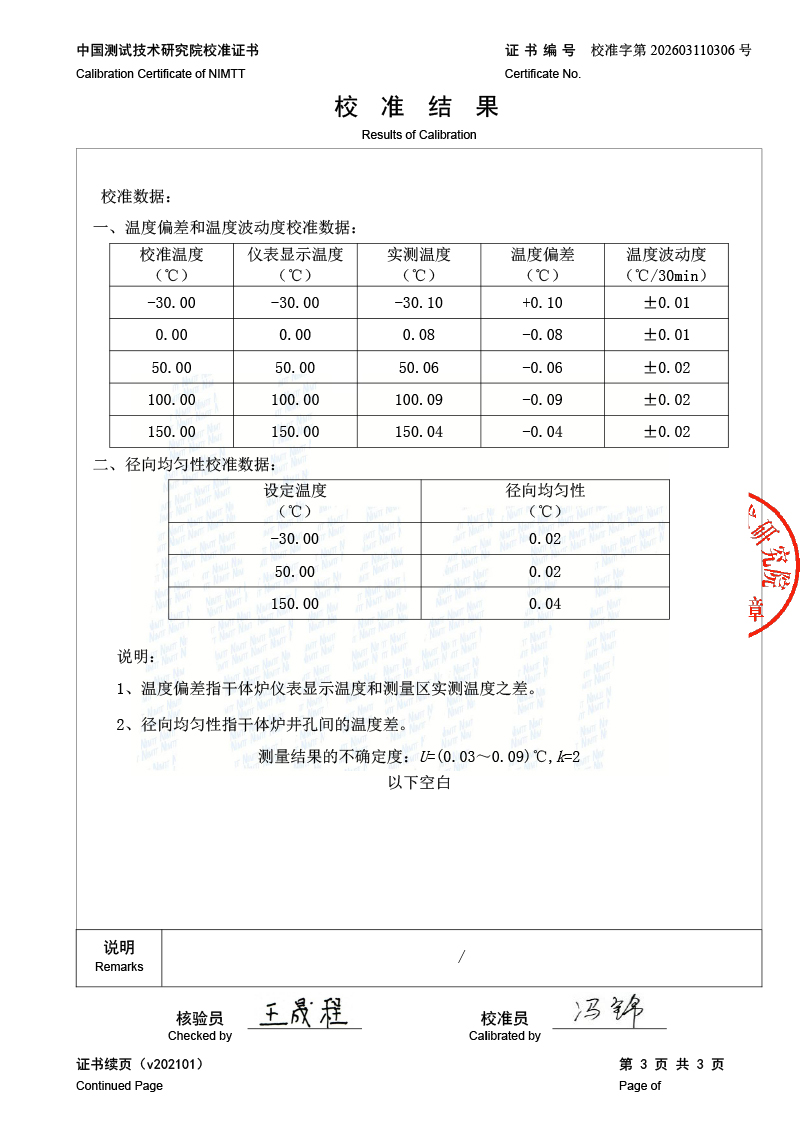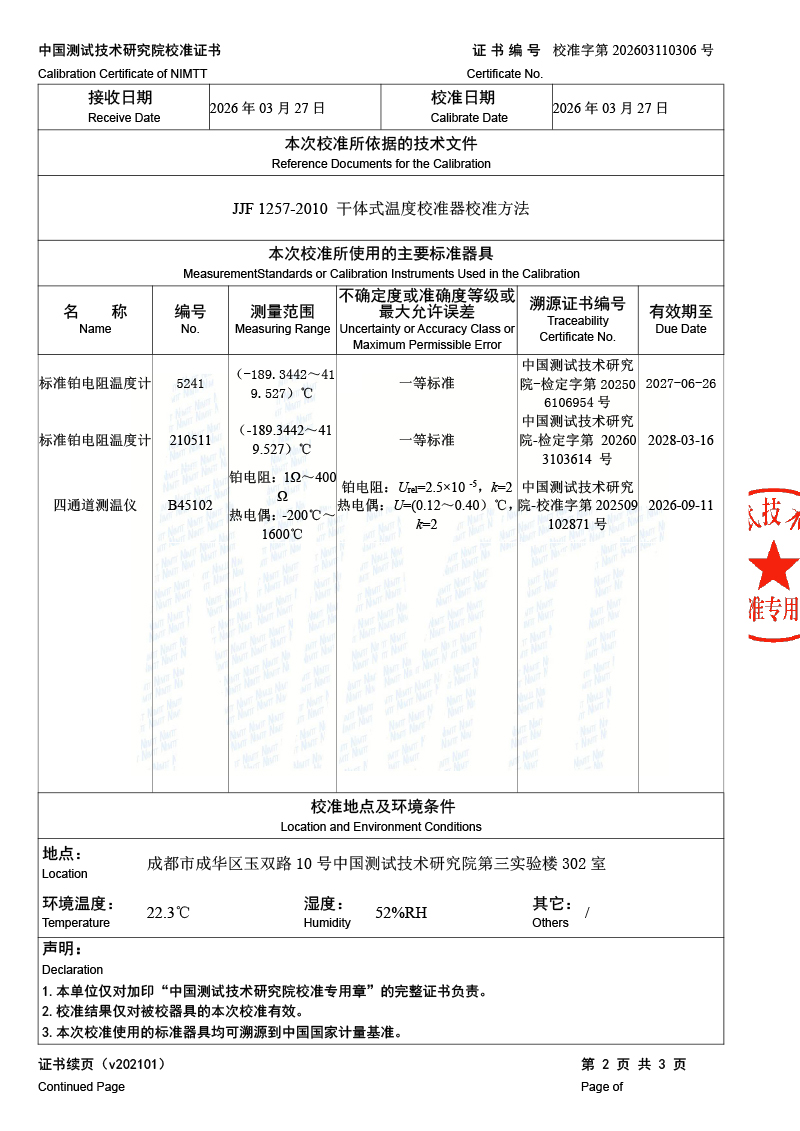低溫干體爐-校準(zhǔn)證書 2026-4-7 本文被閱讀 211 次