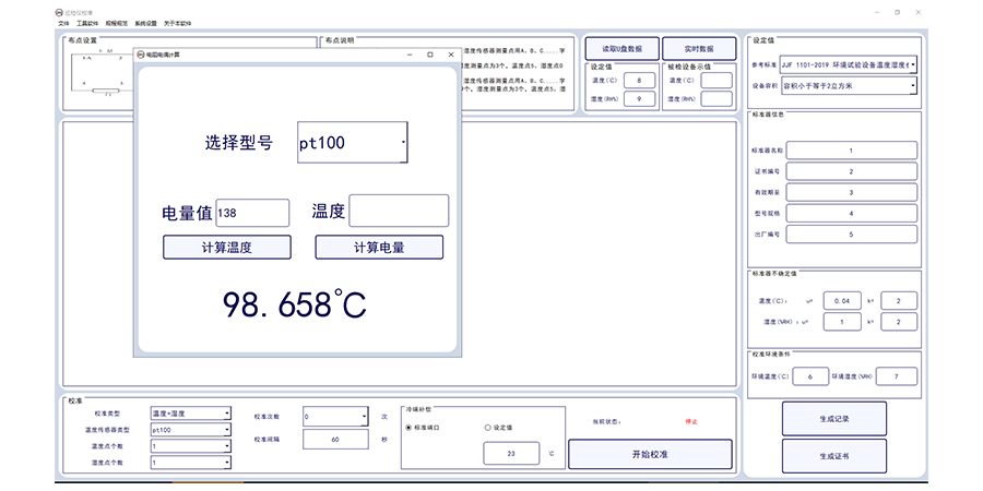 上位機軟件可進行規(guī)范選擇,可進行校準(zhǔn)類型、傳感器類型,校準(zhǔn)次數(shù),校準(zhǔn)間隔設(shè)置,生成excel的單條記錄/word的證書記錄。