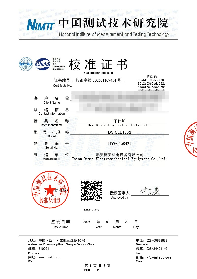 低溫干體爐-校準(zhǔn)證書 2026-1-29 本文被閱讀 1271 次