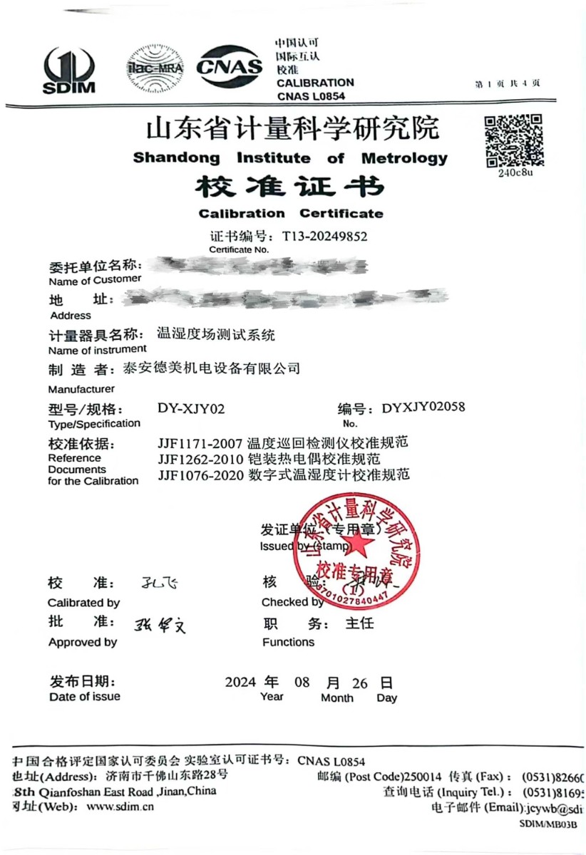 溫濕度場測試系統(tǒng)校準(zhǔn)證書 2024-8-29 本文被閱讀 8077 次