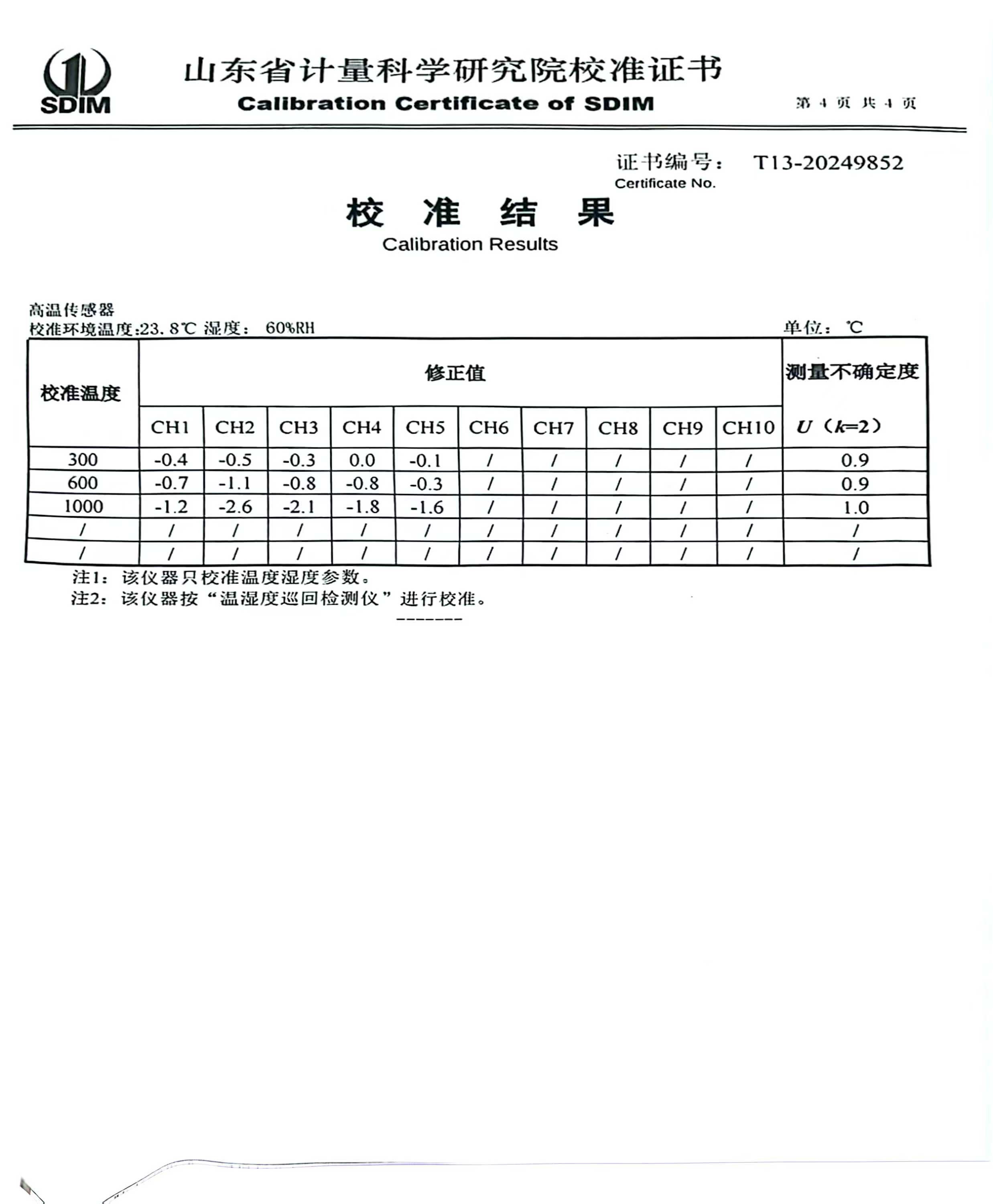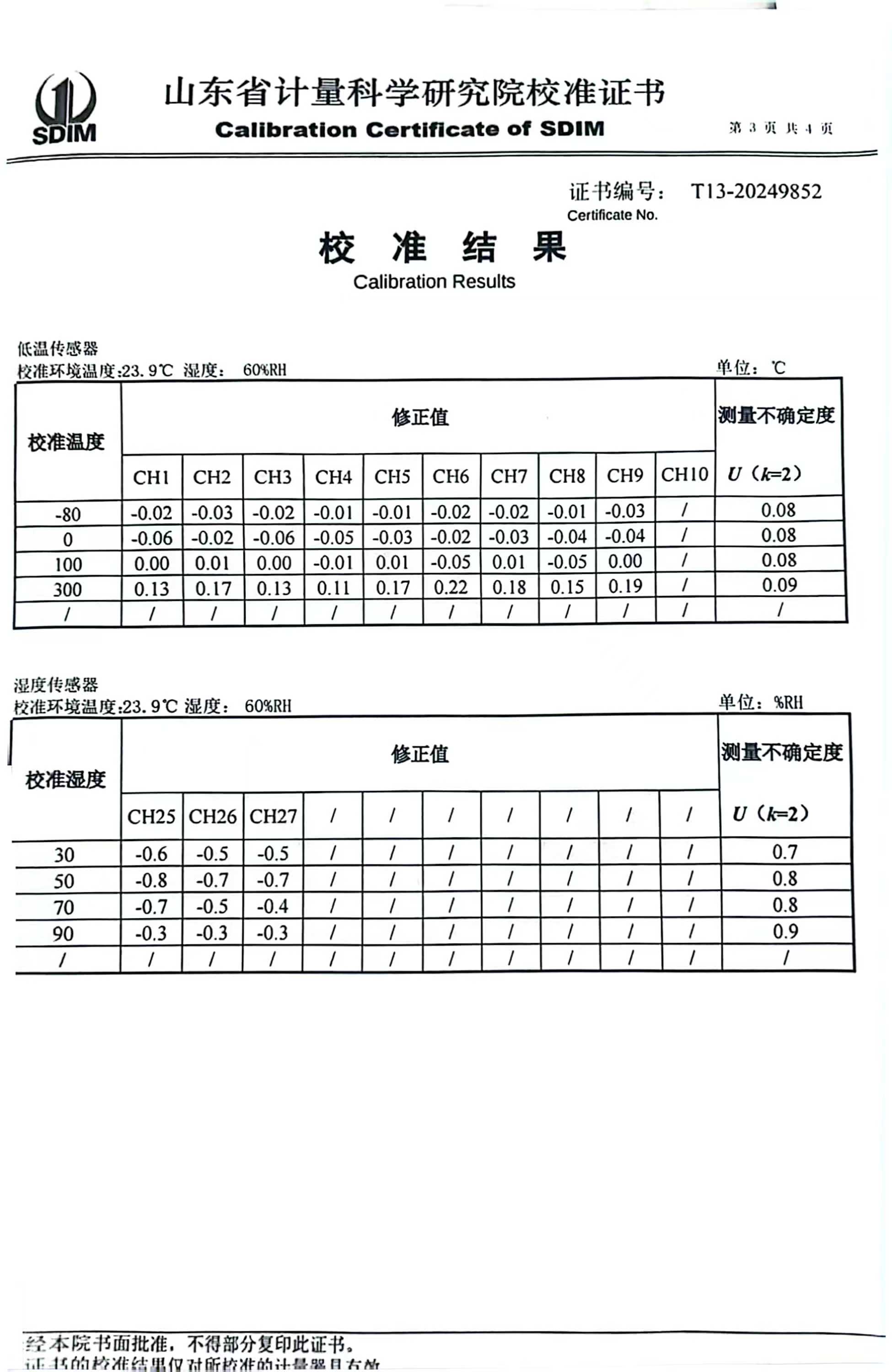 溫濕度場測試系統(tǒng)校準(zhǔn)證書