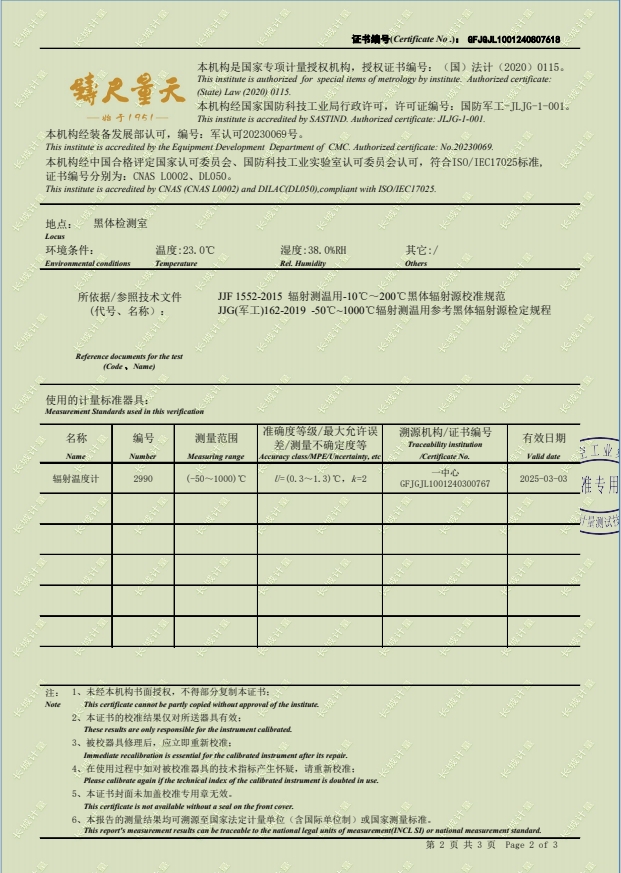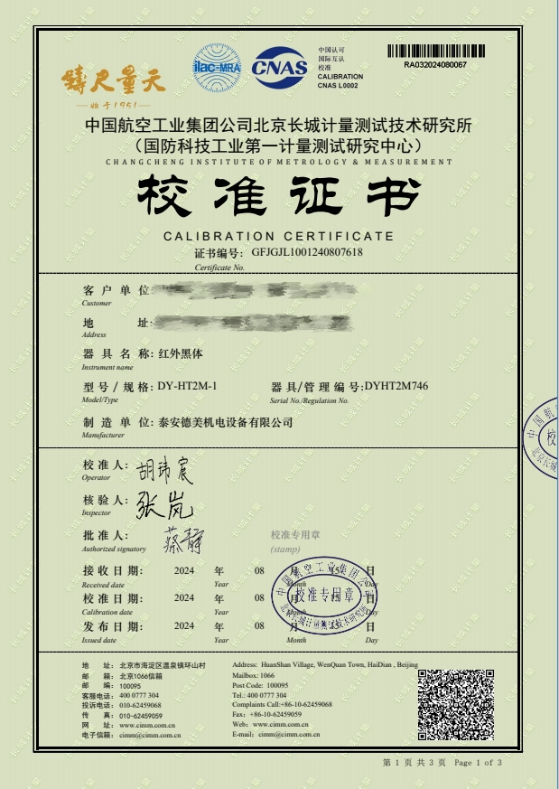 紅外黑體,室溫+5-300℃校準證書 2024-8-29 本文被閱讀 9352 次