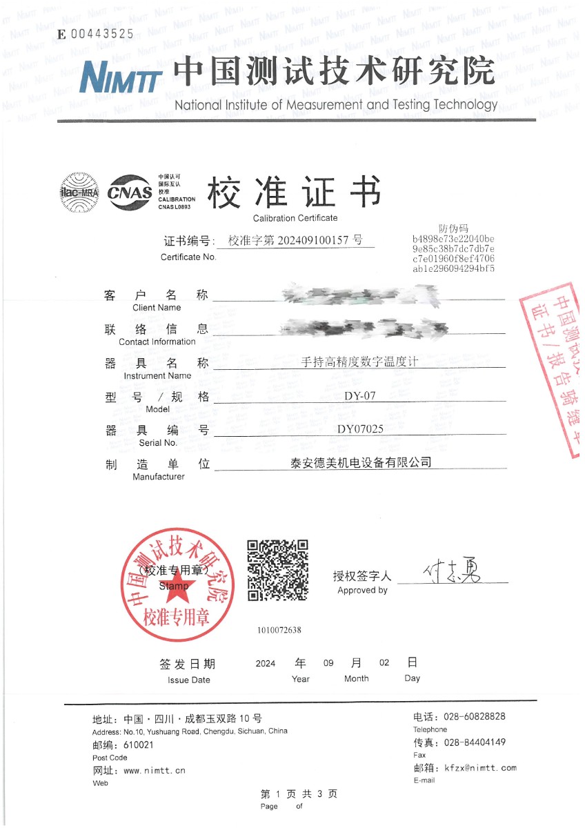 | 上一條:高精度數(shù)字溫度計(jì)(-50~200℃)校準(zhǔn)證書 | 下一條:廉金屬熱電偶檢定爐-校準(zhǔn)證書 |