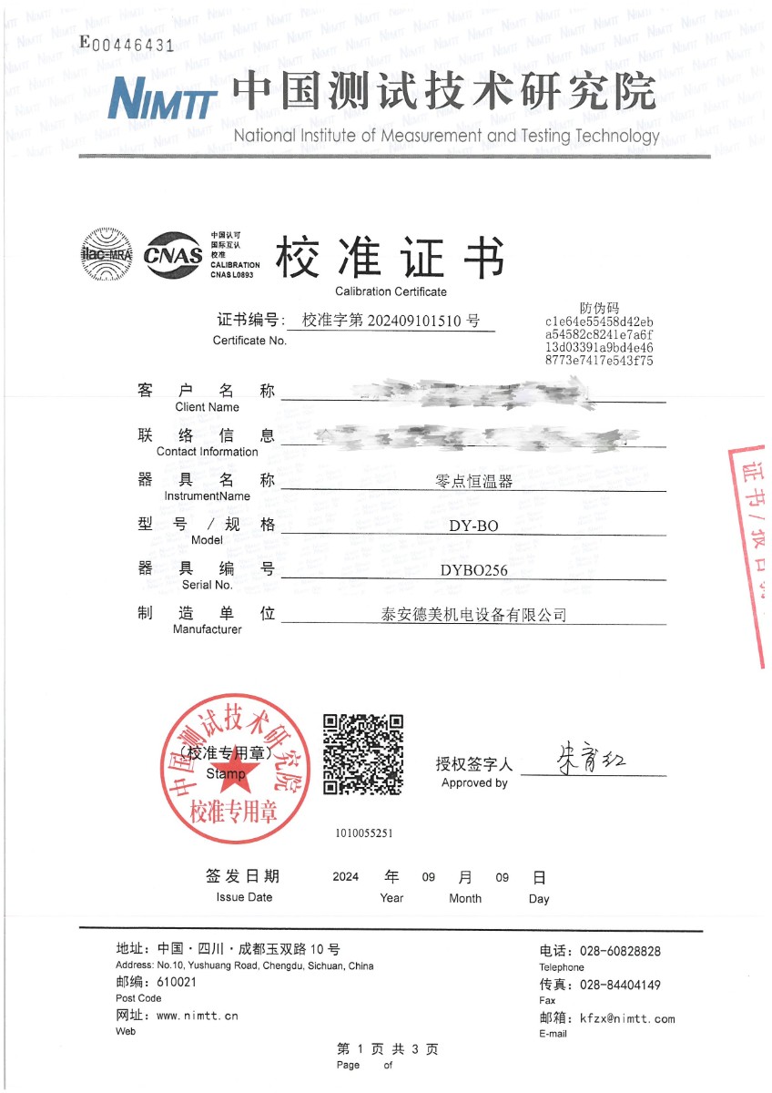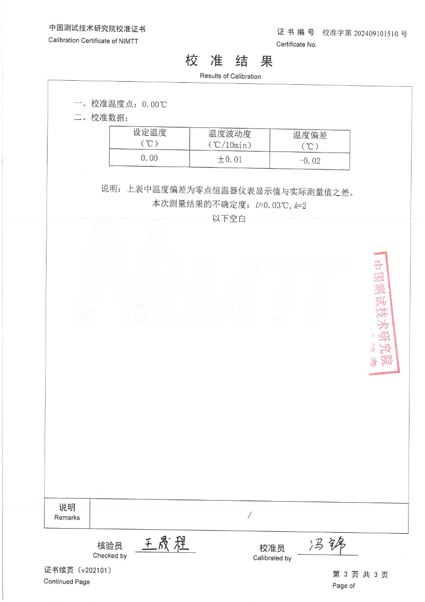 零點恒溫器校準(zhǔn)證書 2024-9-11 本文被閱讀 7383 次