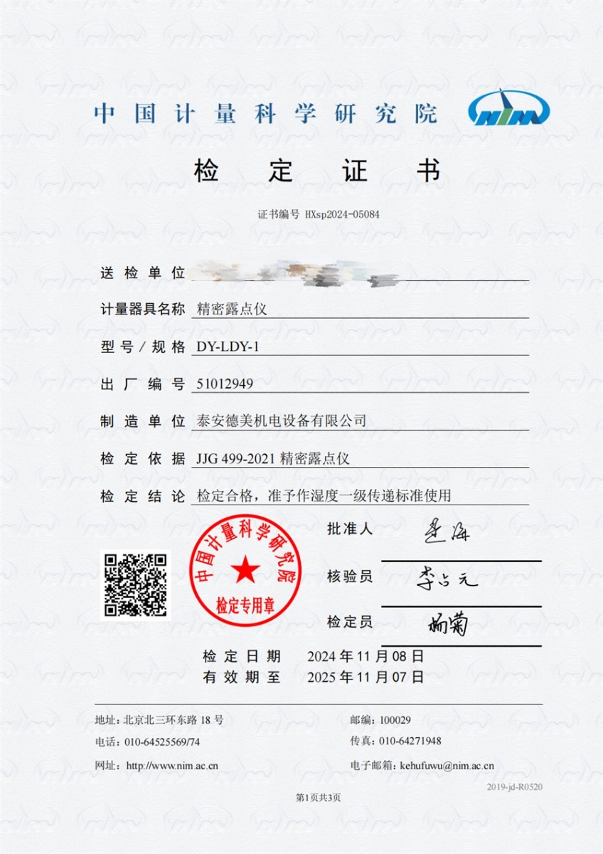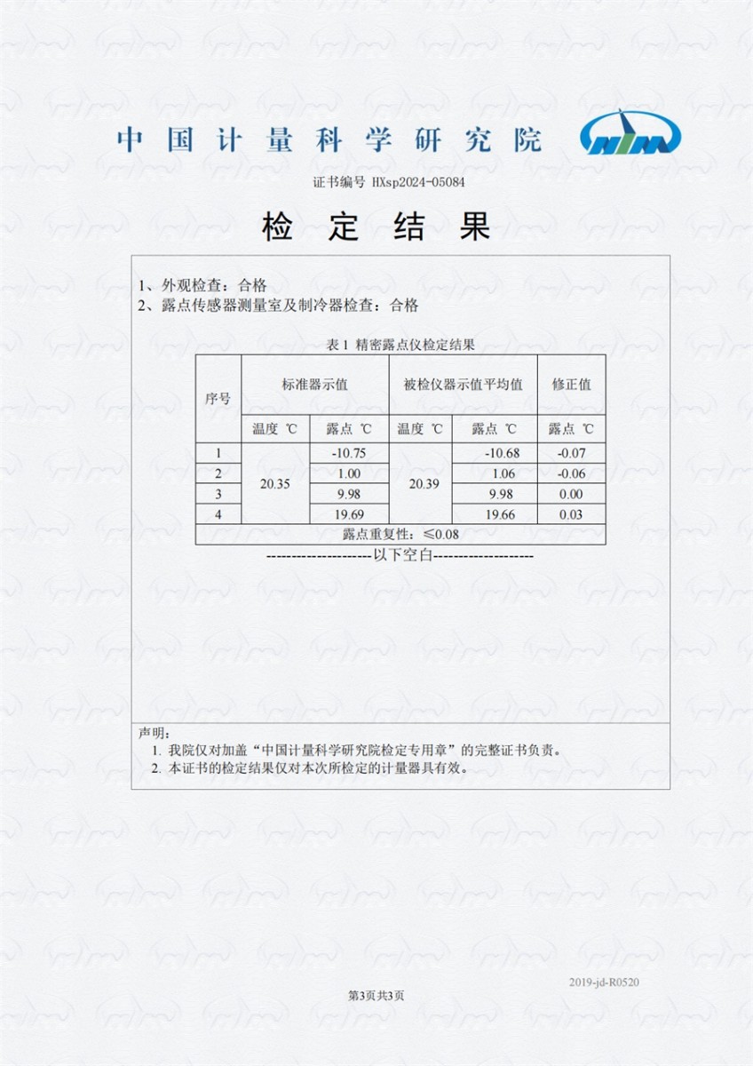 冷鏡式露點(diǎn)儀檢定證書 2024-11-21 本文被閱讀 7689 次