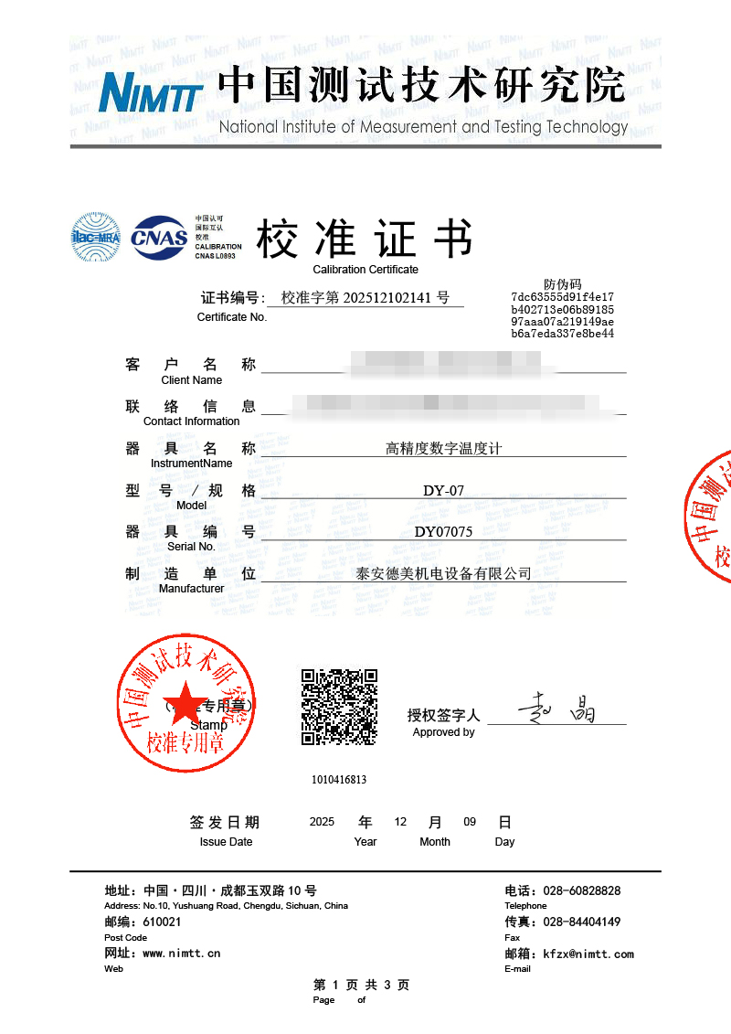 高精度數(shù)字溫度計校準(zhǔn)證書 2025-12-11 本文被閱讀 1600 次