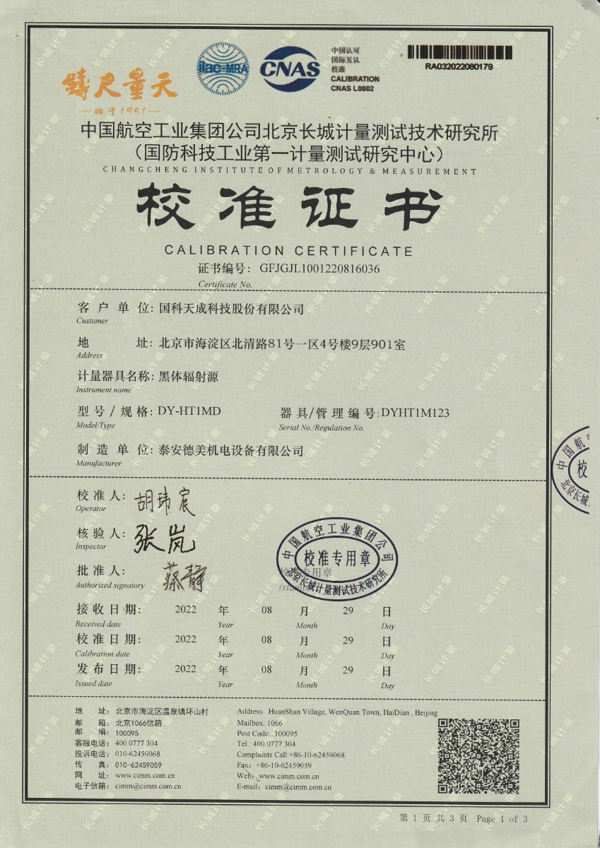 國科天成科技股份有限公司-黑體輻射源 2022-9-5 本文被閱讀 15974 次