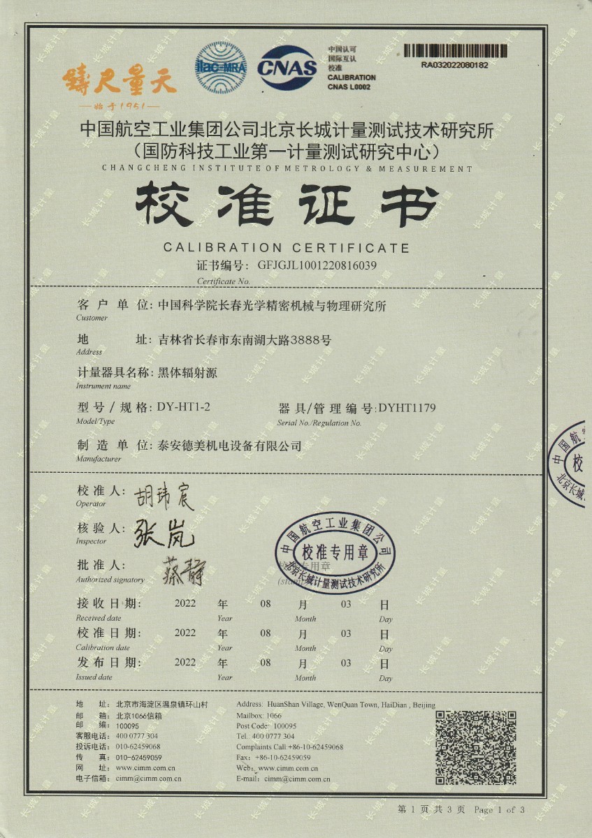 | 上一條:中國(guó)科學(xué)院長(zhǎng)春光學(xué)精密機(jī)械與物理研究所-黑體爐DY-HT1-1 | 下一條:廉金屬熱電偶檢定爐-校準(zhǔn)證書(shū) |