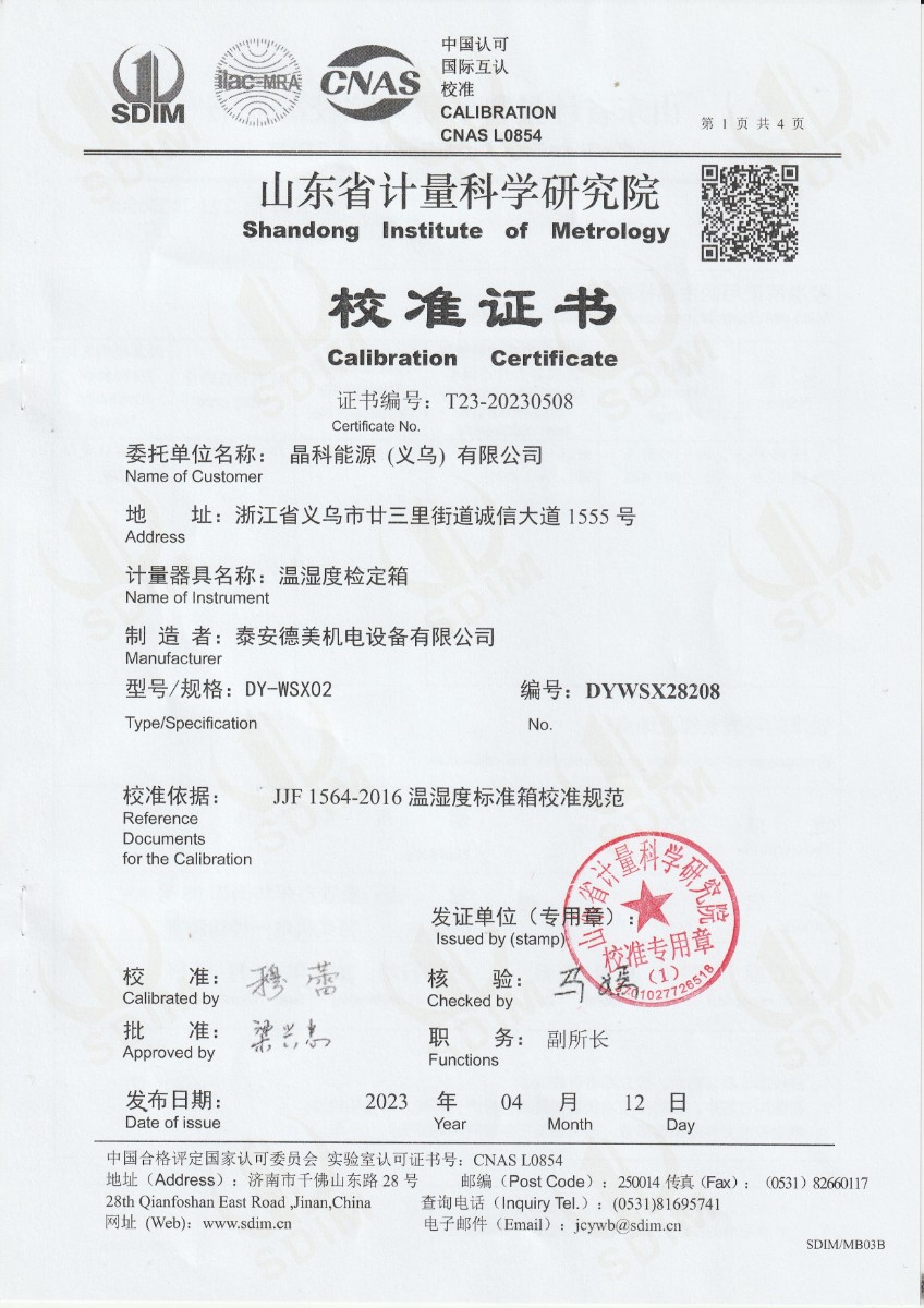 | 上一條:晶科能源(義烏)有限公司 精密露點(diǎn)儀(溫度)校準(zhǔn)證書 | 下一條:廉金屬熱電偶檢定爐-校準(zhǔn)證書 |