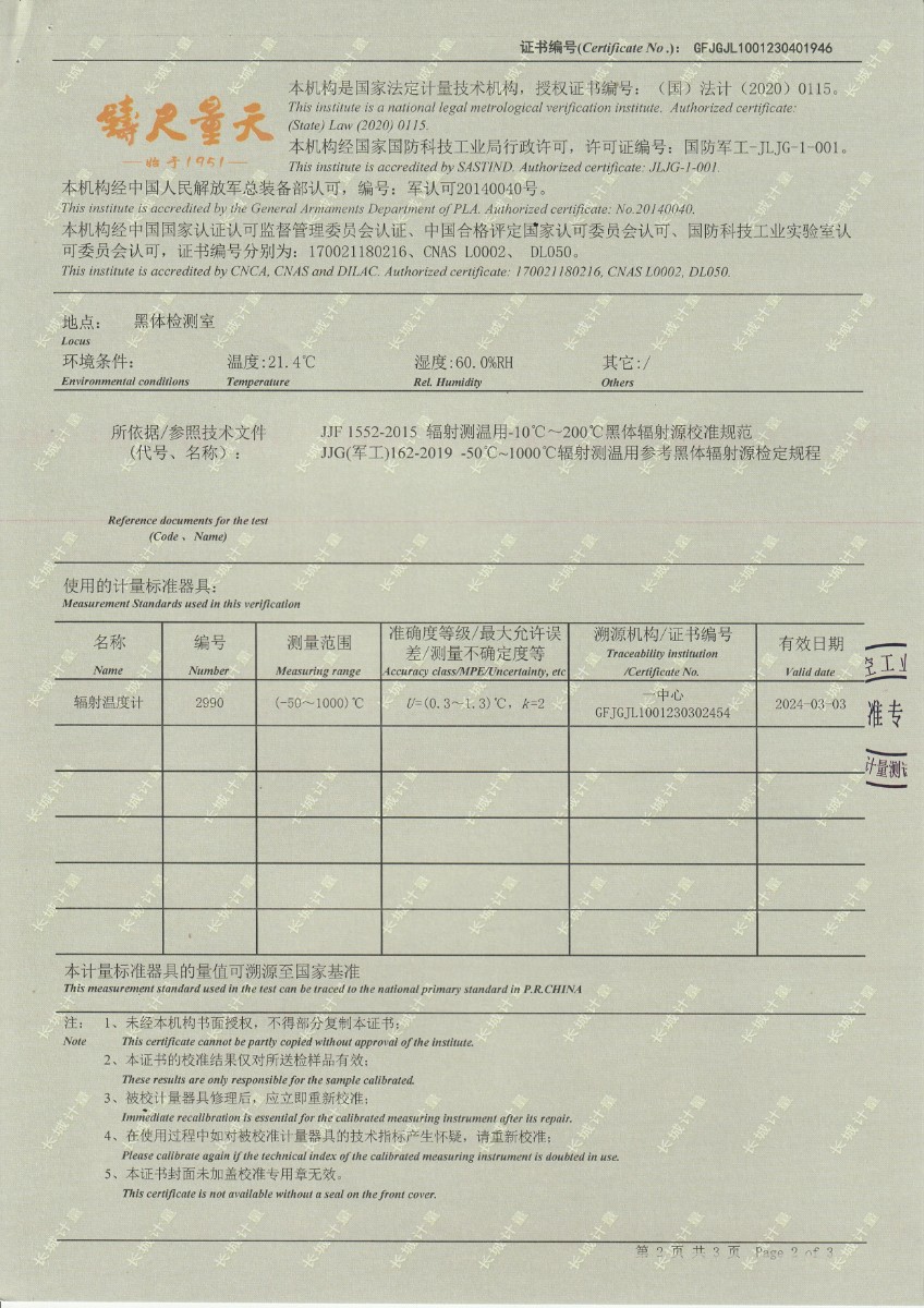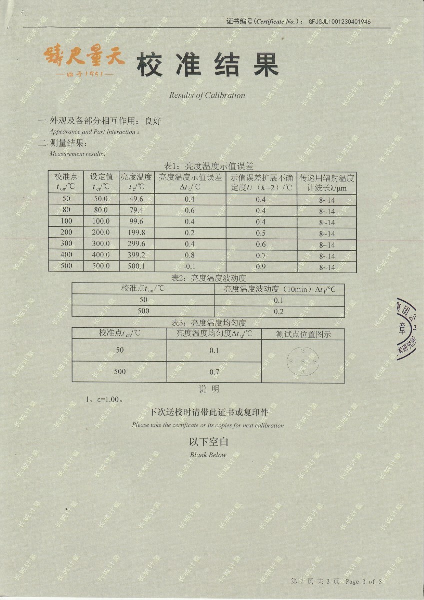 浙江弘志計量測試有限公司 黑體輻射源 校準(zhǔn)證書 2023-5-4 本文被閱讀 14396 次