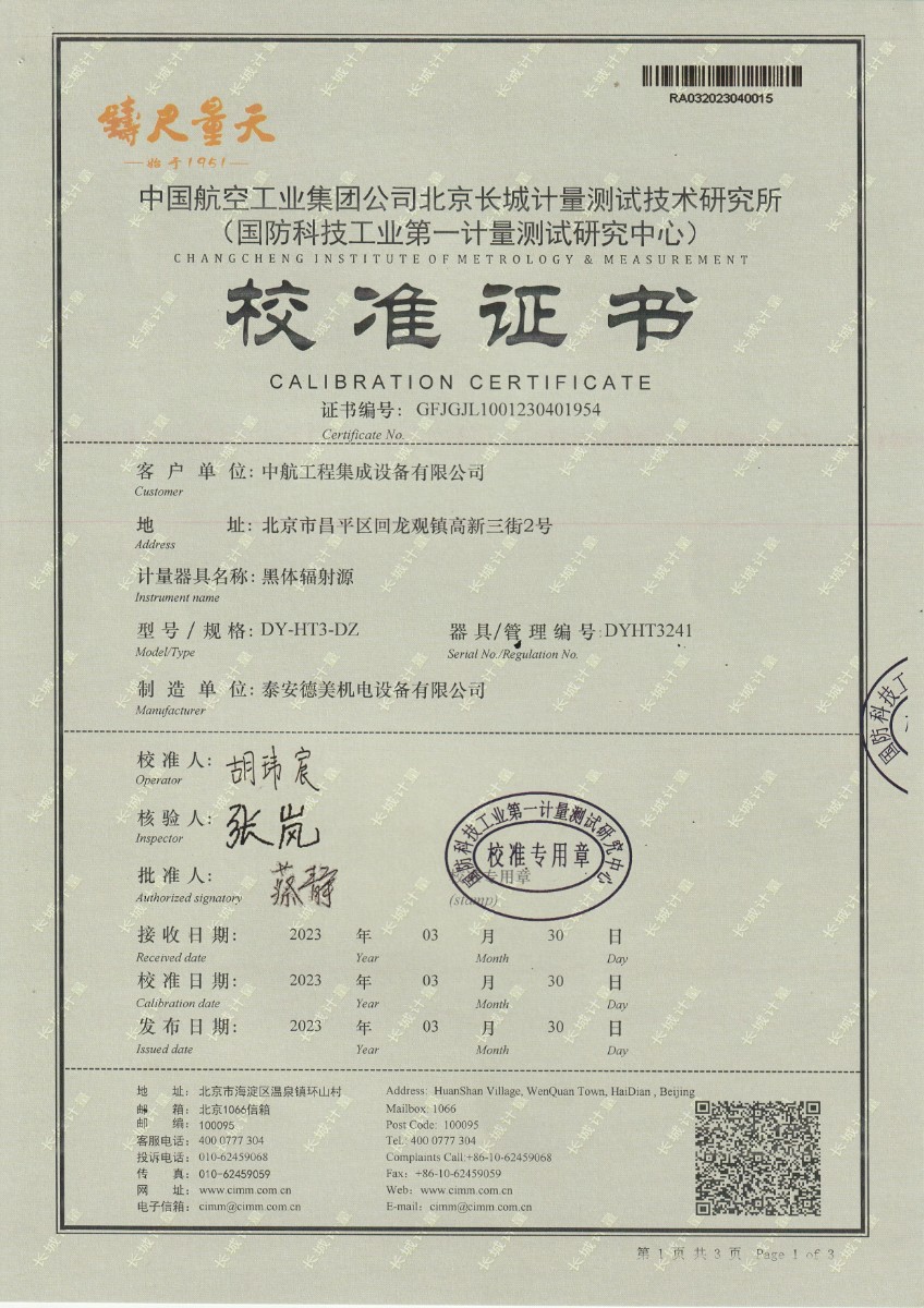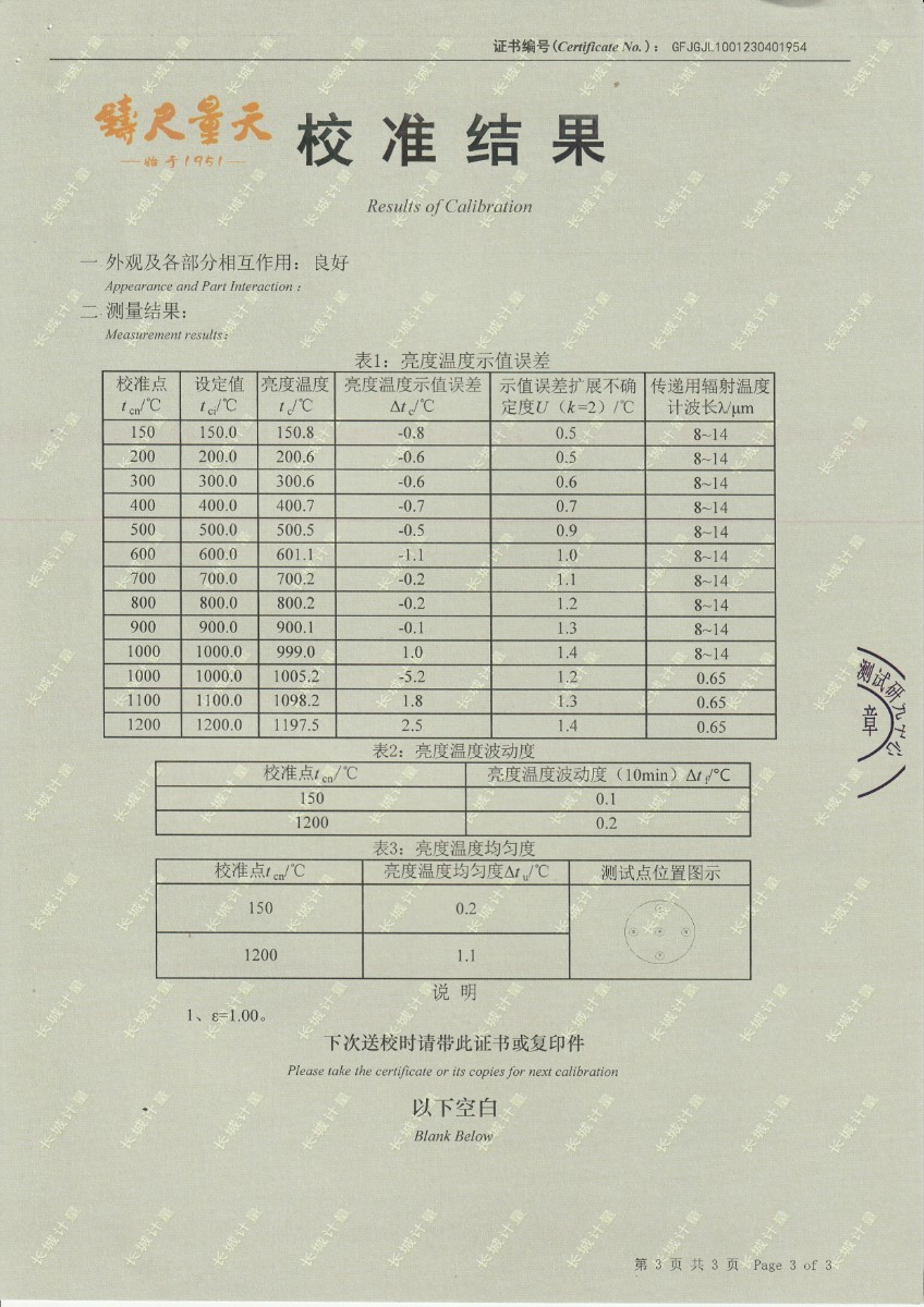 | 上一條:中航工程集成設(shè)備有限公司 黑體輻射源 校準(zhǔn)證書 (1) | 下一條:廉金屬熱電偶檢定爐-校準(zhǔn)證書 |