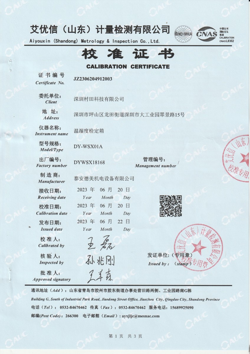 深圳村田科技有限公司-溫濕度檢定箱 2023-7-3 本文被閱讀 12849 次