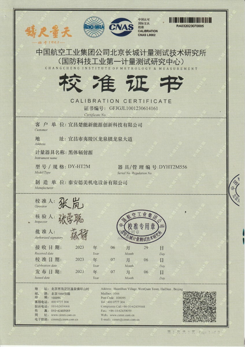 宜昌楚能新能源創(chuàng)新科技有限公司-黑體輻射源 2023-7-17 本文被閱讀 16205 次