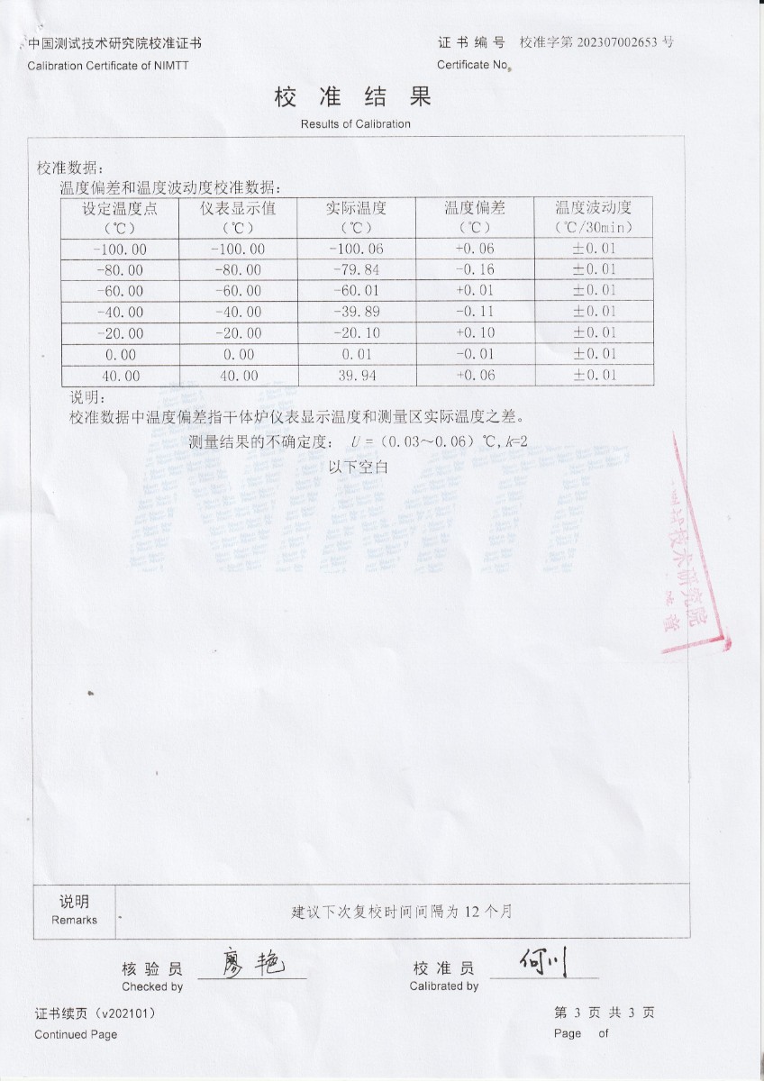| 上一條:宜昌楚能新能源創(chuàng)新科技有限公司-黑體輻射源 | 下一條:廉金屬熱電偶檢定爐-校準(zhǔn)證書 |