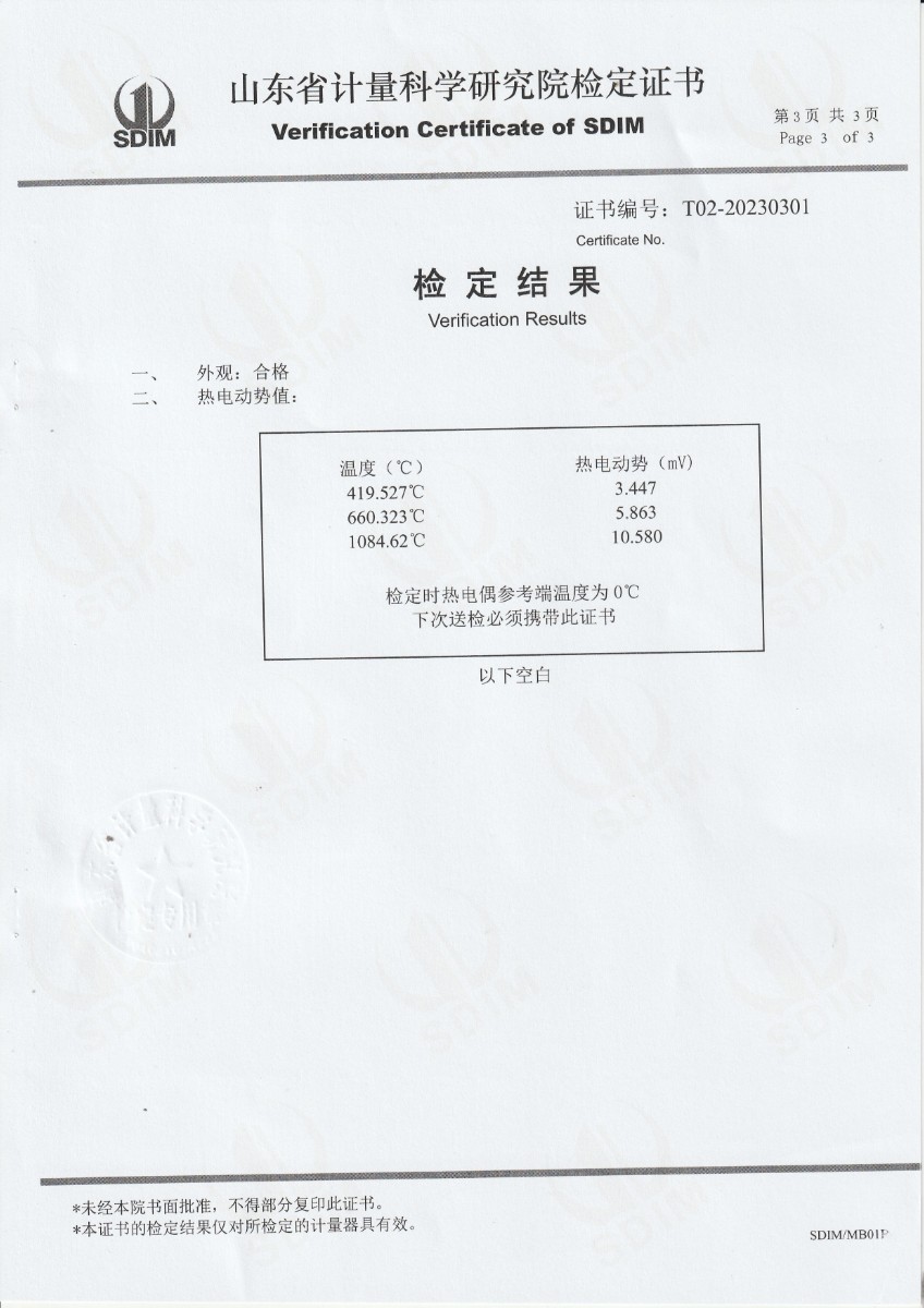 上一條:標(biāo)準(zhǔn)鉑銠10-鉑熱電偶S23-7108檢定證書下一條:廉金屬熱電偶檢定爐-校準(zhǔn)證書