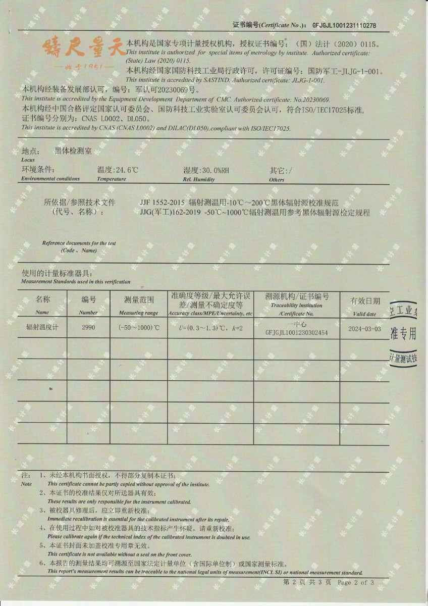 黑體輻射源校準證書DYHT2192 2023-12-4 本文被閱讀 8885 次
