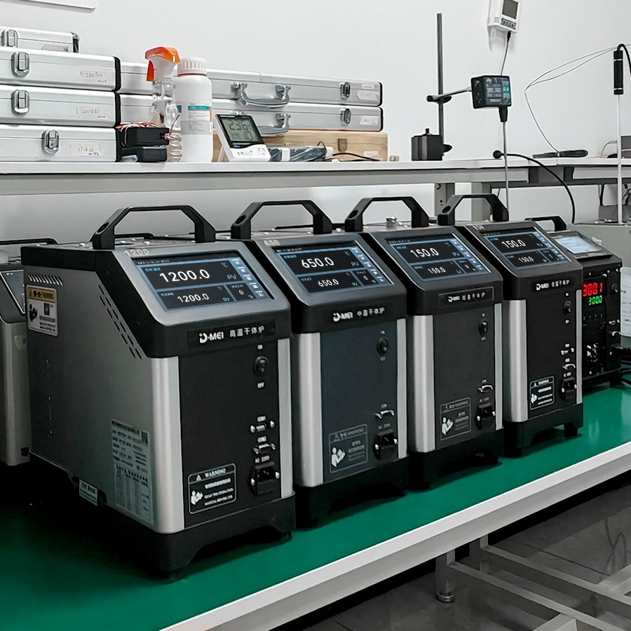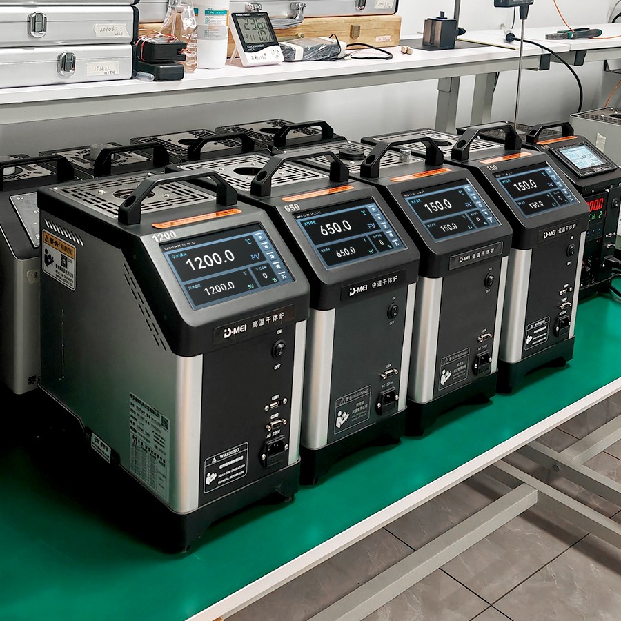干體爐能夠提供一個穩(wěn) 定的、均勻的、準確的溫度環(huán)境(溫場),提供了類似于恒溫槽(液浴槽)的性能,但是干體爐卻攜帶方便,不需要放置液體。干體爐到達預定溫度點并且溫度穩(wěn) 定的時間比恒溫槽快5到10倍,這樣可以大大節(jié)省校準人員的時間,提高溫度檢定速度。干體爐的便攜性使其能夠到現(xiàn)場進行校準工作,從而解決了恒溫槽在運輸移動上的困難。 通過干體爐可以方便地校準溫度傳感器、水銀溫度計、膨脹式溫度計、熱電偶、熱電阻、等溫度傳感器。