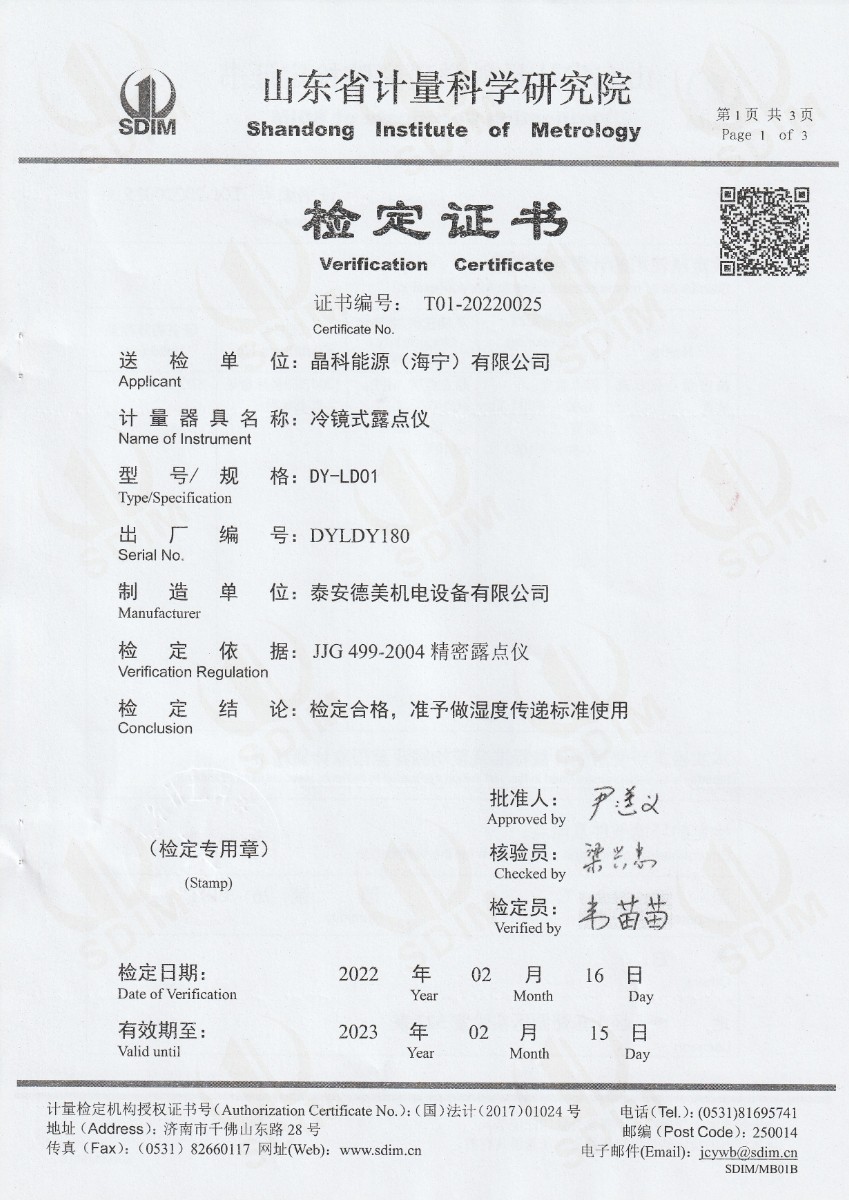 | 上一條:晶科能源(海寧)有限公司-冷鏡式露點(diǎn)儀(溫度)校準(zhǔn)證書(shū) | 下一條:廉金屬熱電偶檢定爐-校準(zhǔn)證書(shū) |