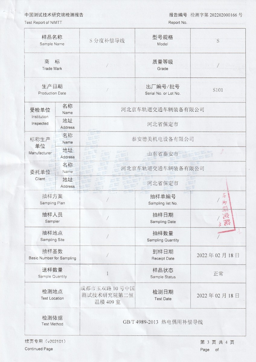 河北京車軌道交通車輛裝備有限公司S分度補償導線 2022-2-24 本文被閱讀 14030 次