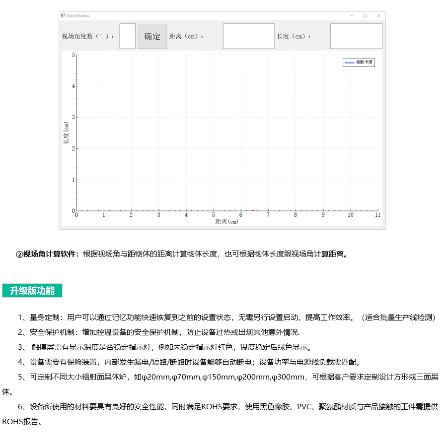 5)大面源等溫黑體輻射面,發(fā)射率出廠默認0.95,如需要不同發(fā)射率可在0.96-0.99之間發(fā)射率可調(diào)。