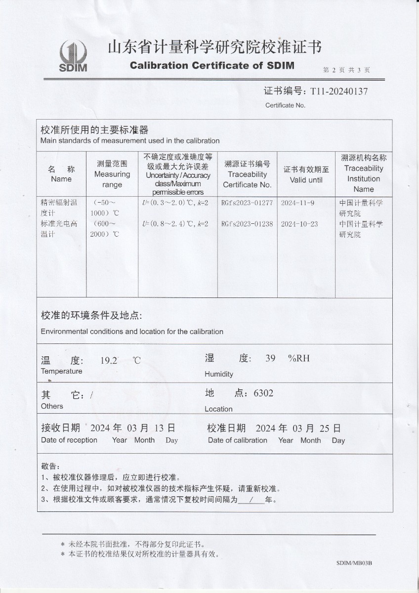 面源黑體爐校準(zhǔn)證書 2024-3-27 本文被閱讀 7214 次