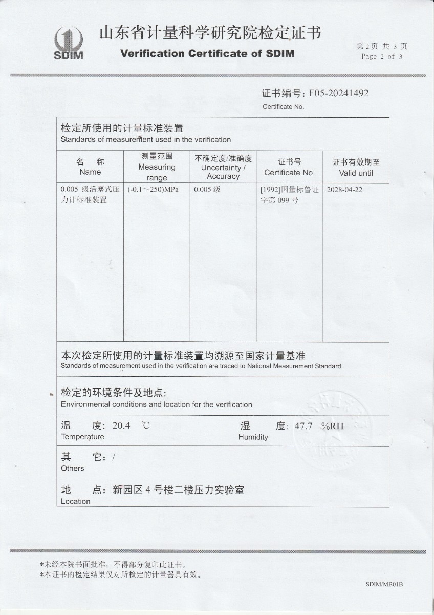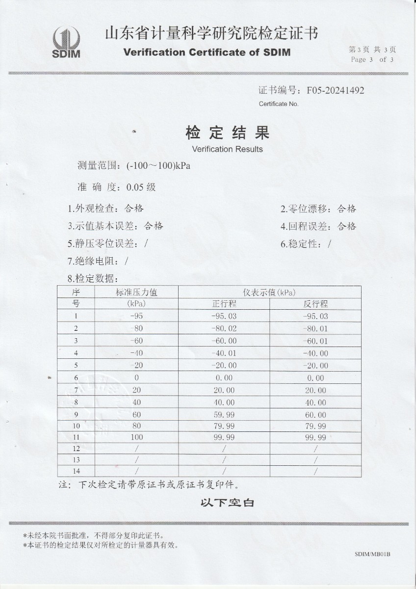 數(shù)字壓力表檢定證書 2024-4-11 本文被閱讀 7235 次