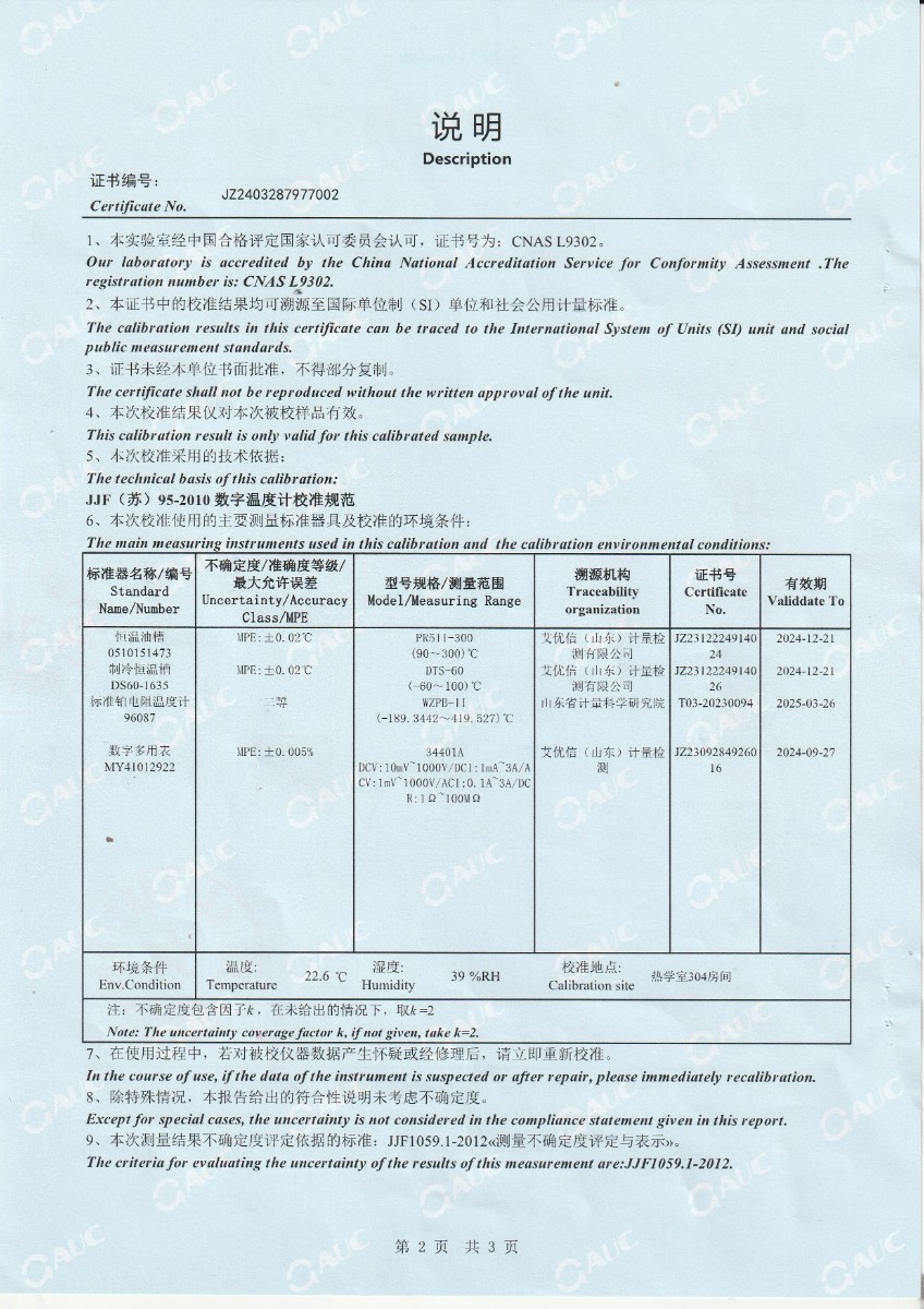 高精度數字溫度計校準證書 2024-4-13 本文被閱讀 7158 次