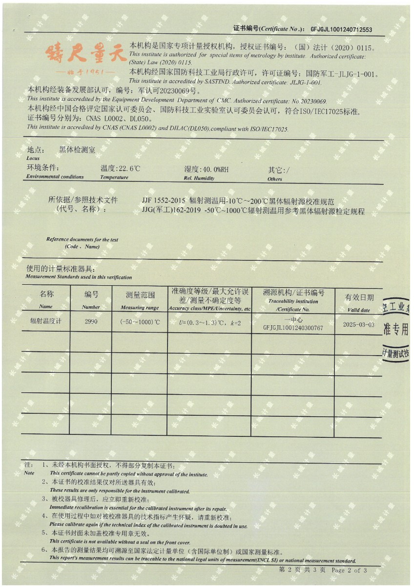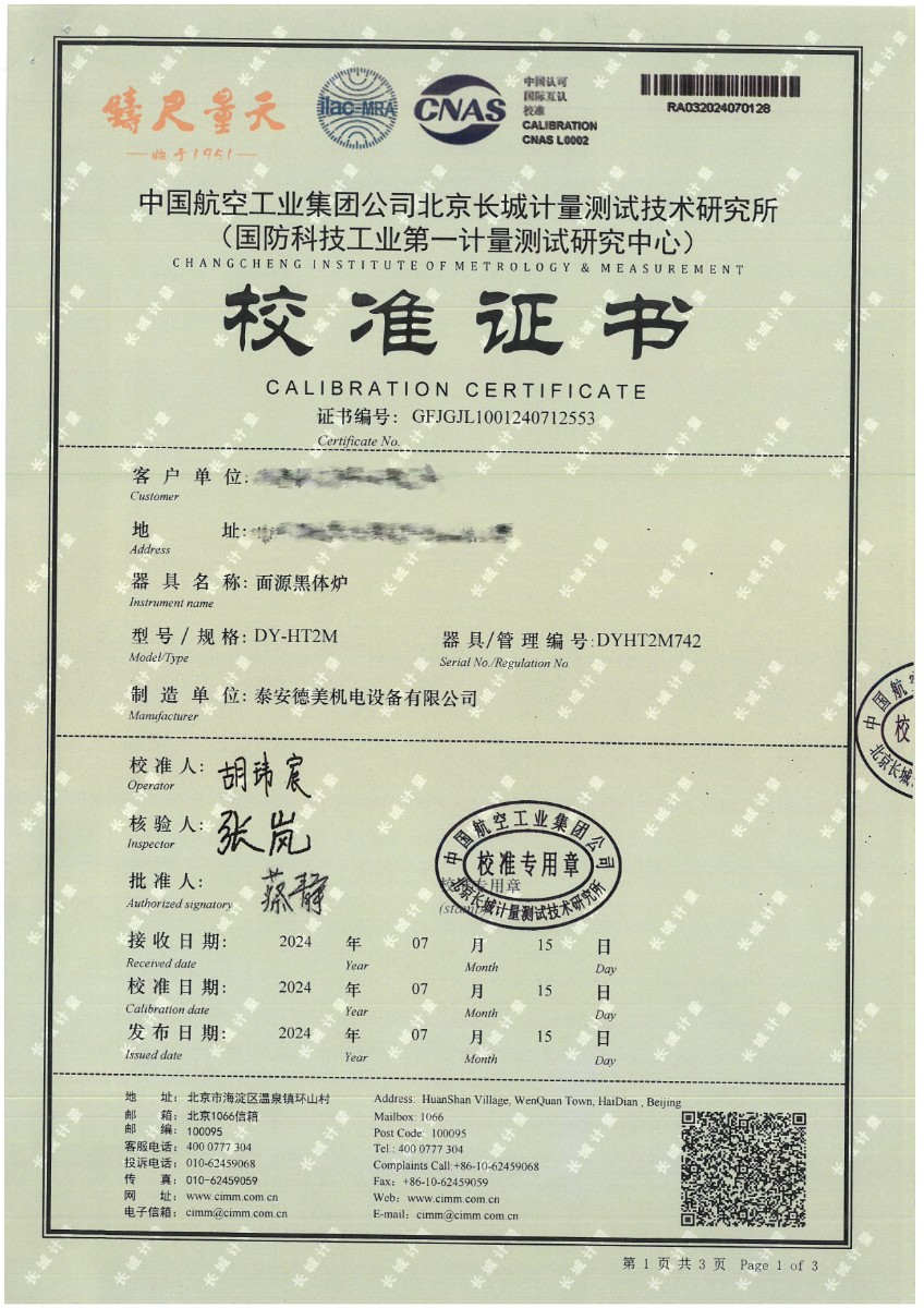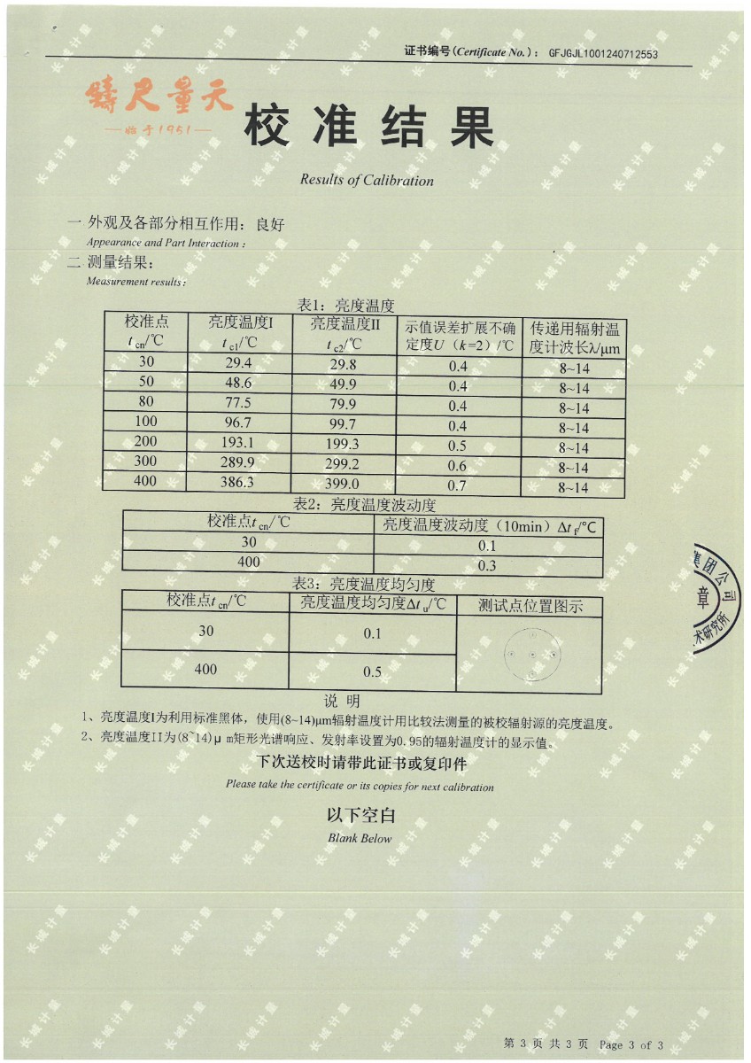 面源黑體爐(室溫+5℃~400℃)校準(zhǔn)證書 2024-7-29 本文被閱讀 8443 次
