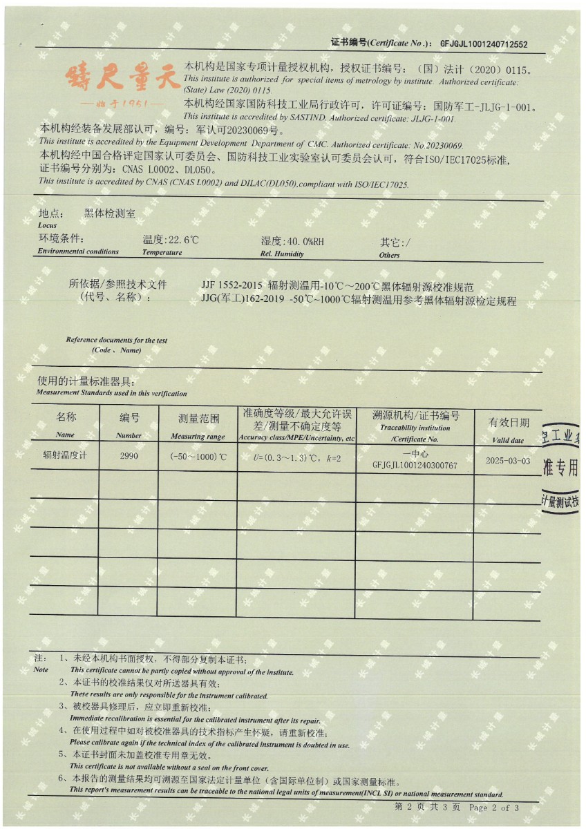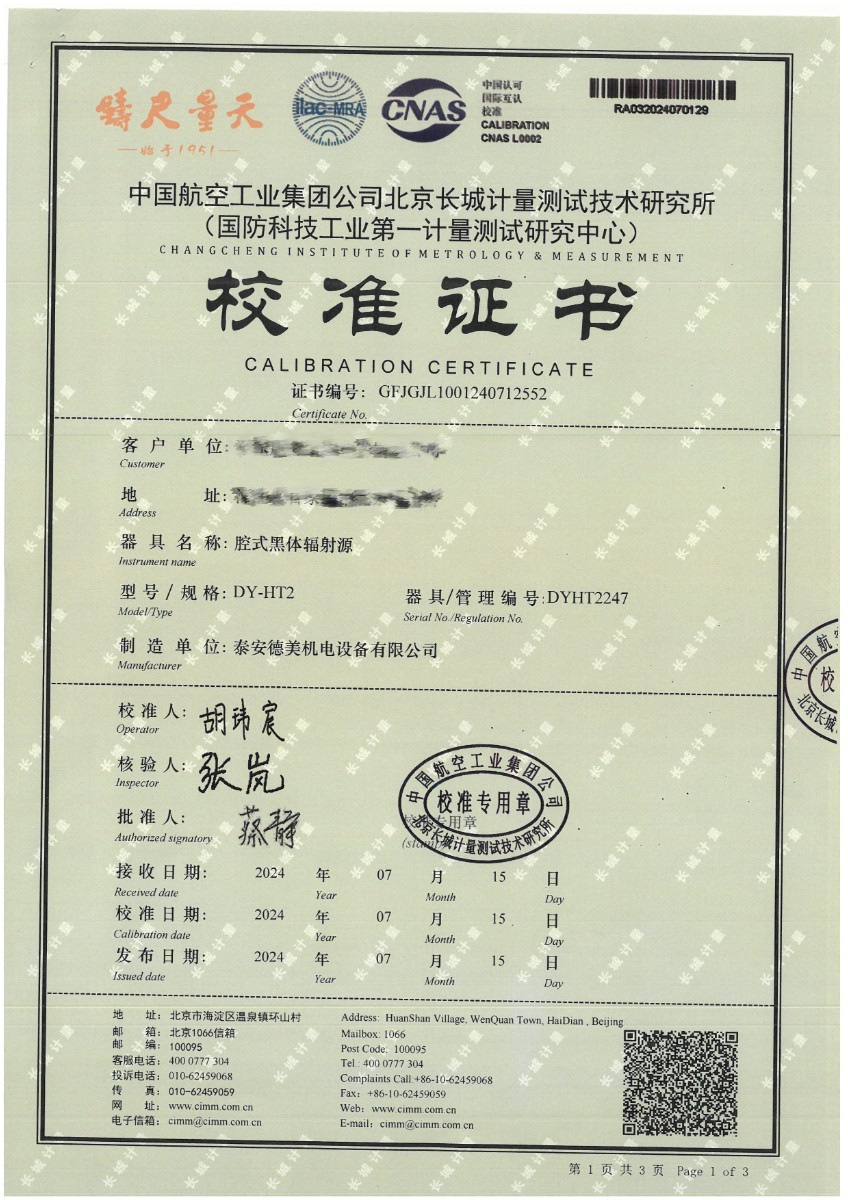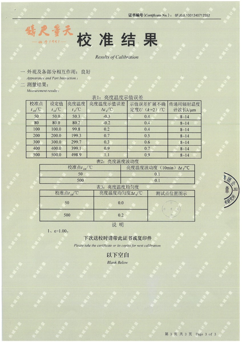腔式黑體(50~500℃)校準(zhǔn)證書 2024-7-29 本文被閱讀 8842 次