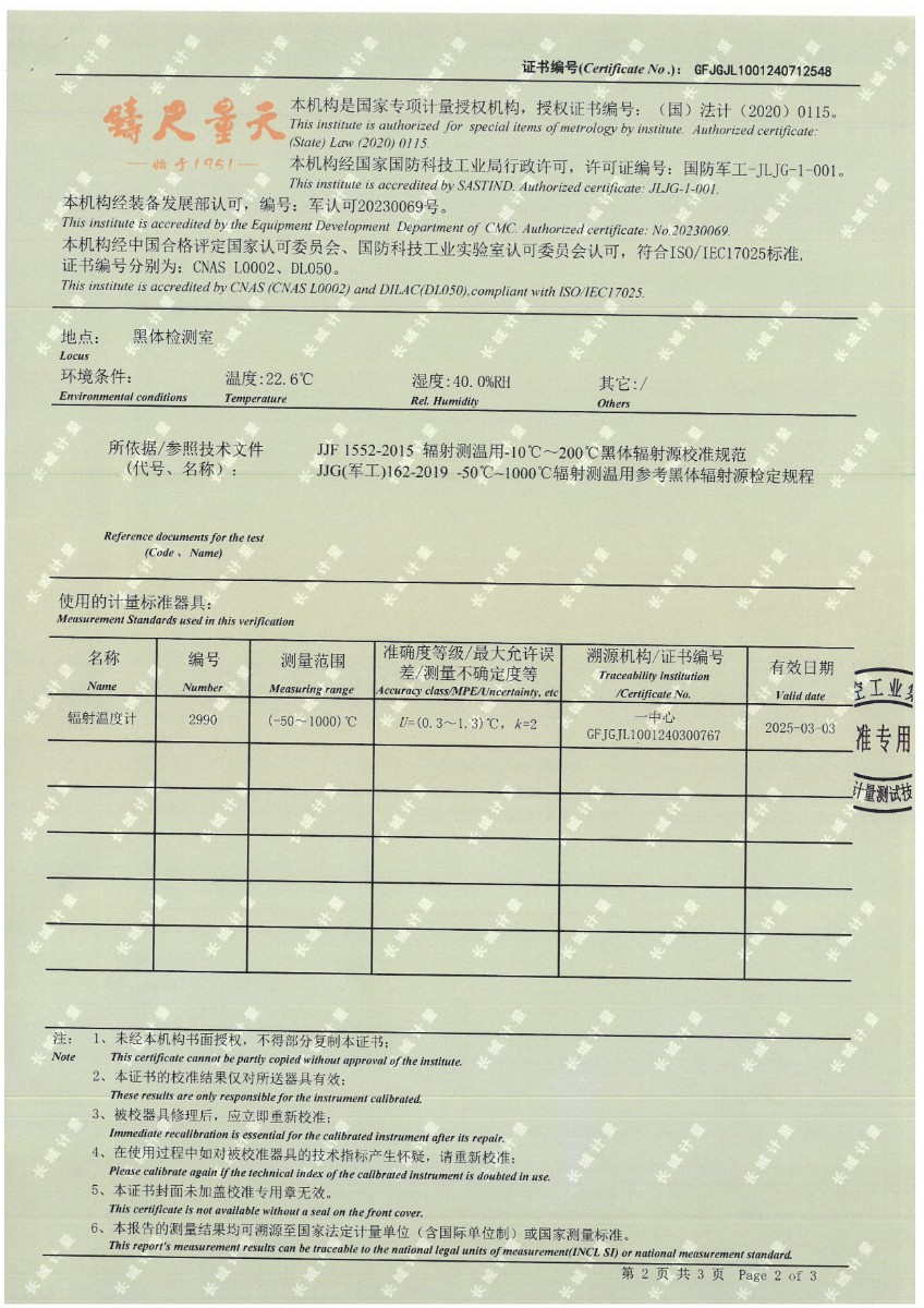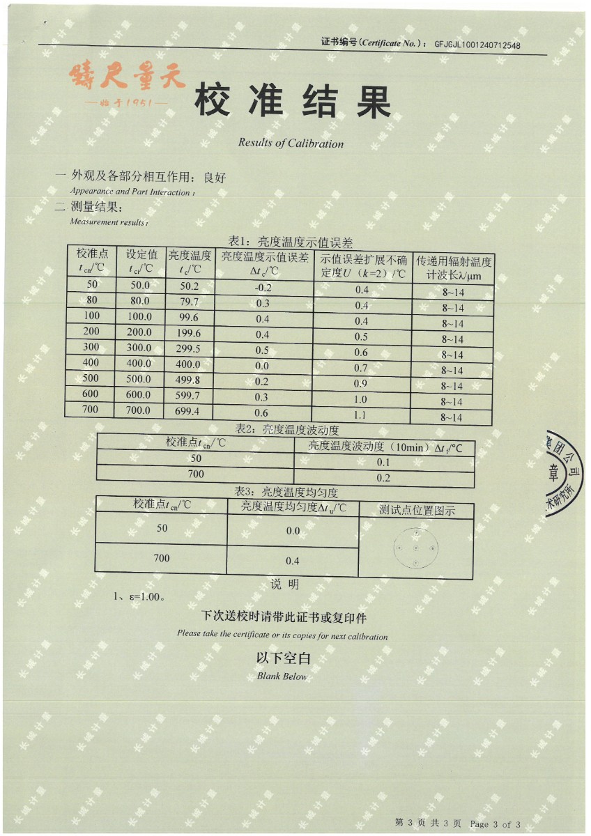 黑體(50~700℃)校準(zhǔn)證書 2024-7-29 本文被閱讀 11360 次
