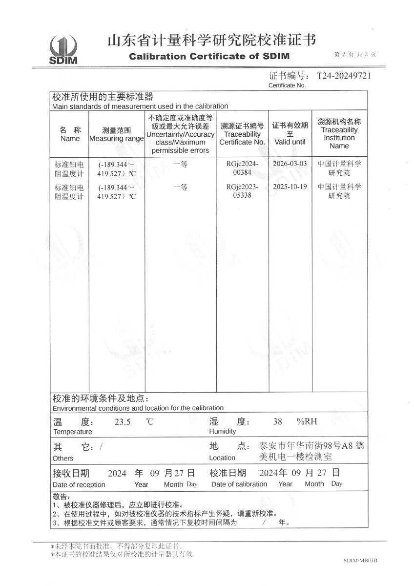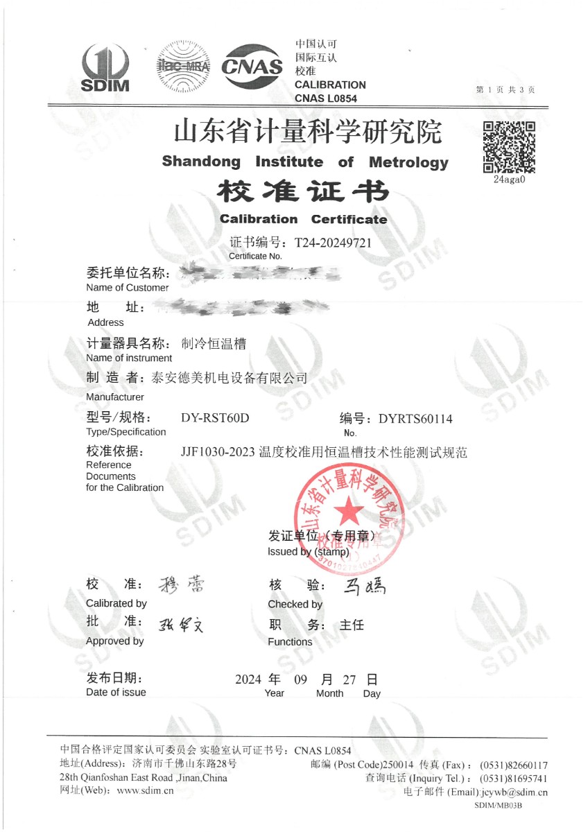 制冷恒溫槽(-60~95℃)校準證書 2024-10-8 本文被閱讀 7458 次