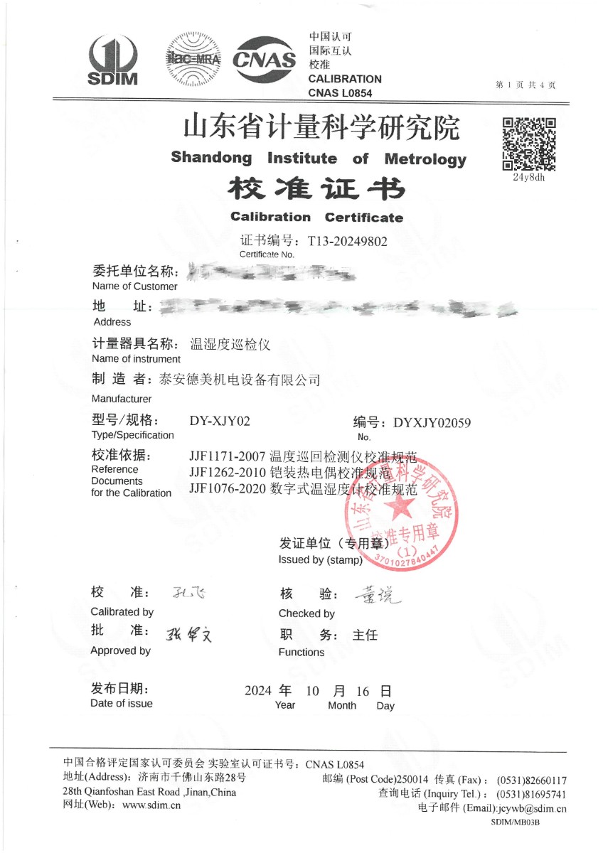 溫濕度巡檢儀校準證書 2024-10-17 本文被閱讀 6297 次