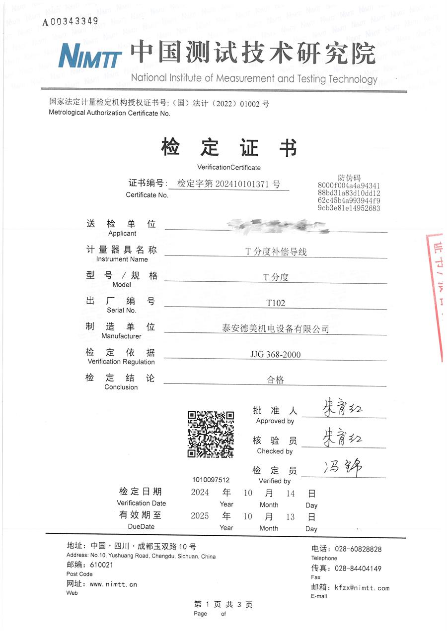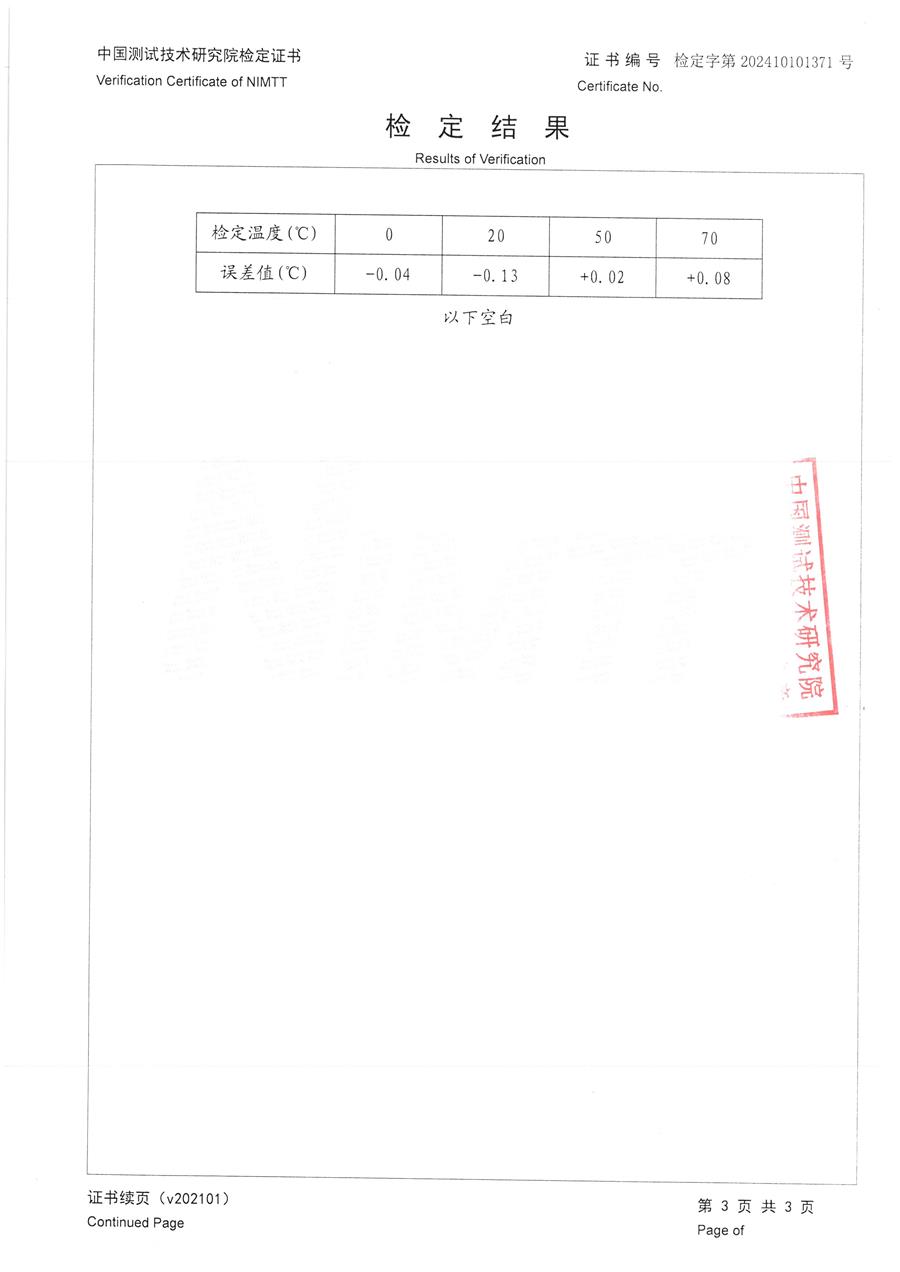 | 上一條:面源黑體爐(室溫+5-300℃)校準(zhǔn)證書(shū) | 下一條:廉金屬熱電偶檢定爐-校準(zhǔn)證書(shū) |