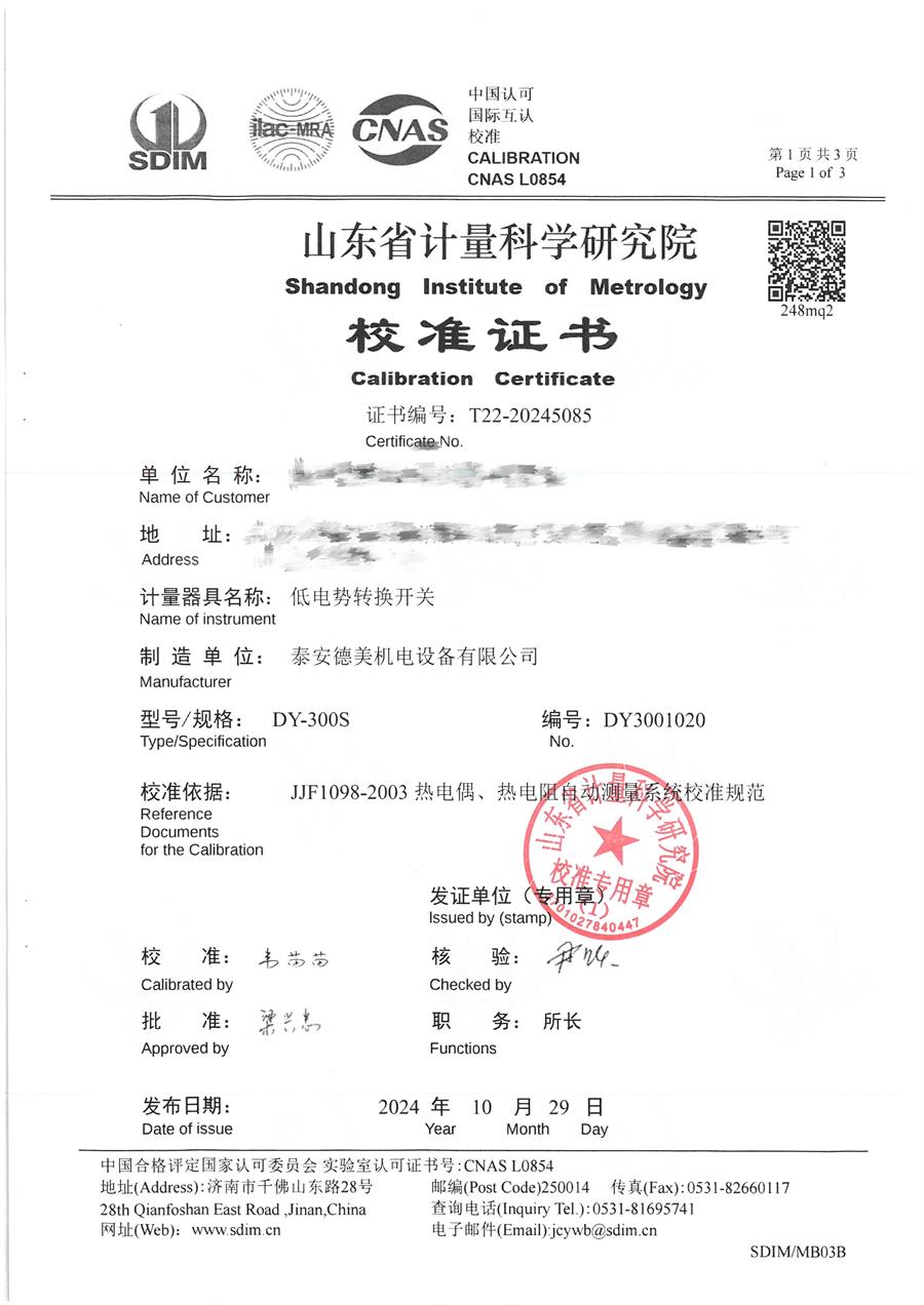 | 上一條:標(biāo)準(zhǔn)濕度發(fā)生器校準(zhǔn)證書(shū) | 下一條:廉金屬熱電偶檢定爐-校準(zhǔn)證書(shū) |