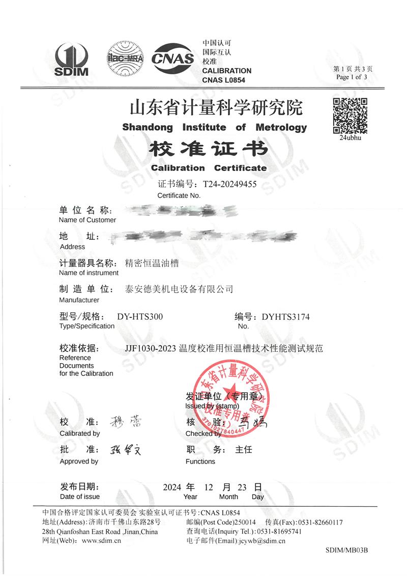 油槽(70~300℃)校準(zhǔn)證書 2024-12-26 本文被閱讀 7883 次