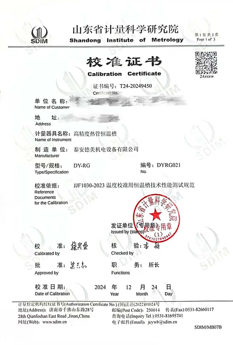 高精度熱管恒溫槽(50~300℃)校準(zhǔn)證書 2025-1-2 本文被閱讀 7586 次