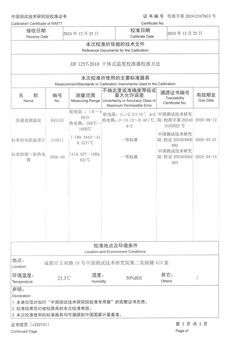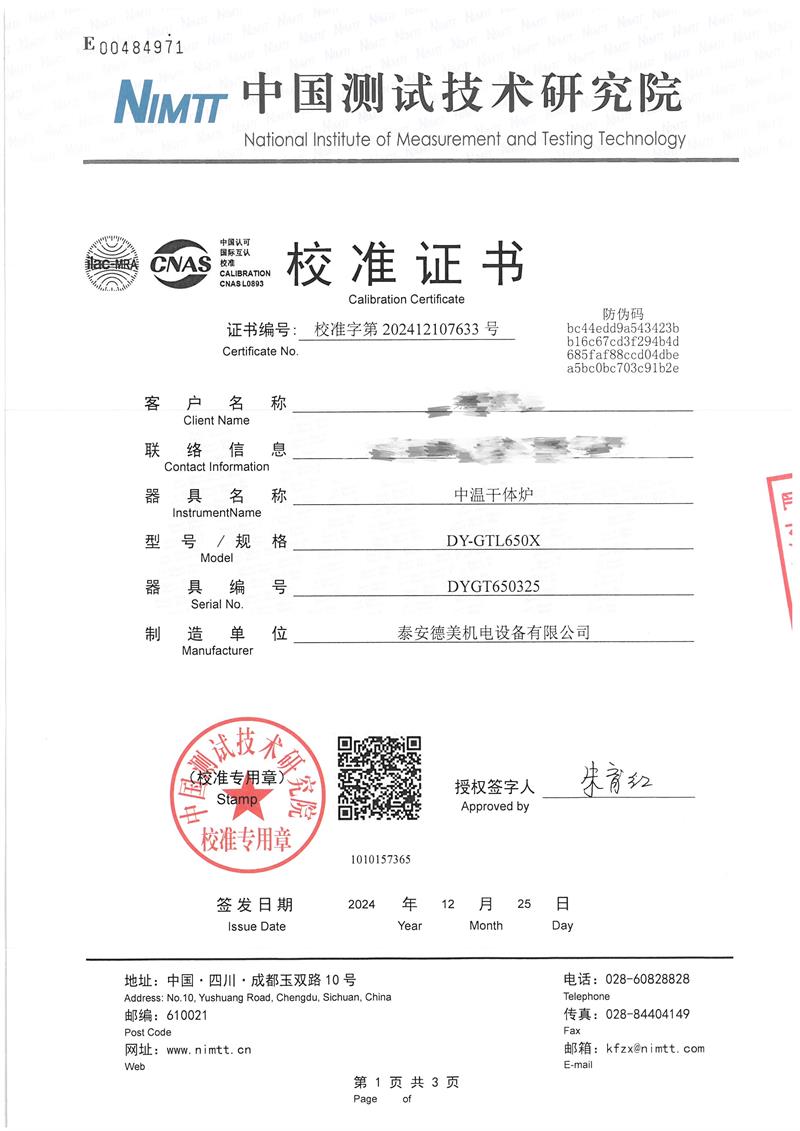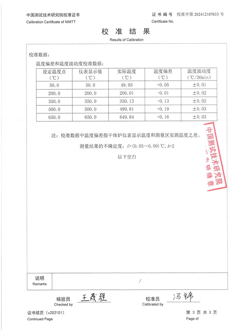| 上一條:高精度熱管恒溫槽(50~300℃)校準(zhǔn)證書(shū) | 下一條:廉金屬熱電偶檢定爐-校準(zhǔn)證書(shū) |