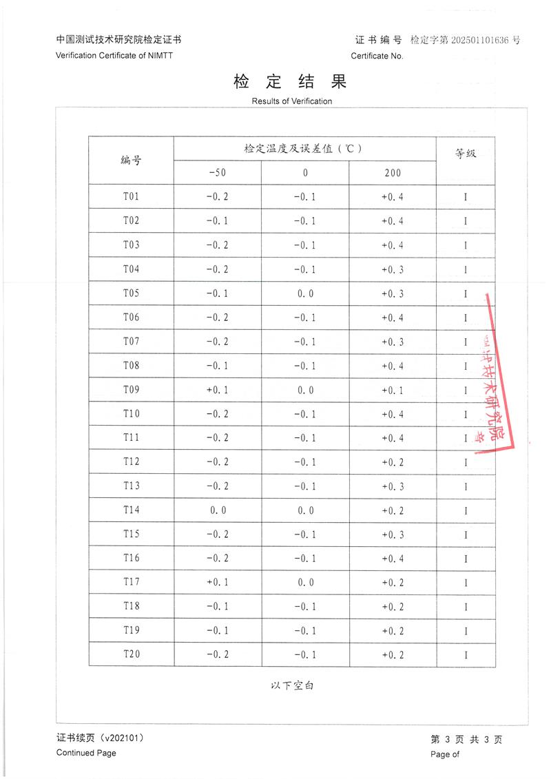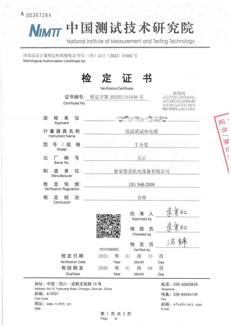 (T型)低溫測試熱電偶檢定證書 2025-1-13 本文被閱讀 6552 次
